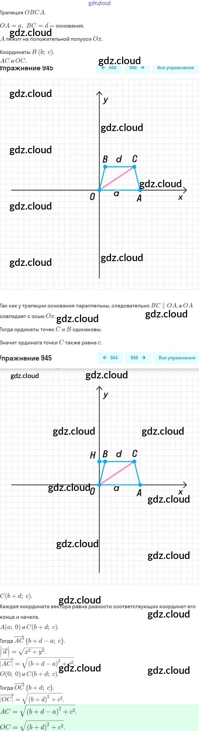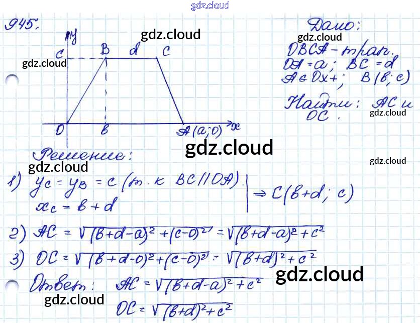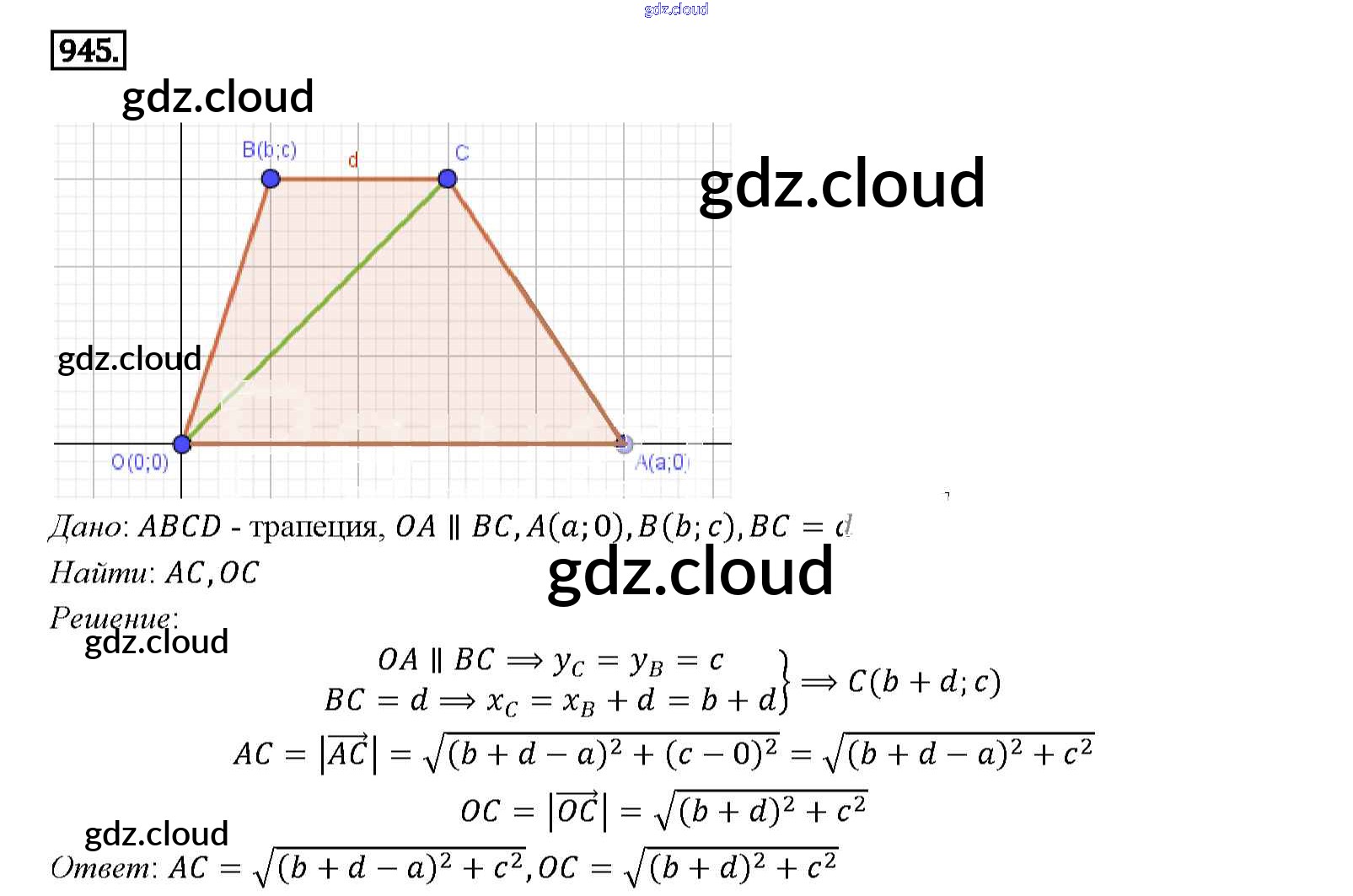 Ответ на задание 945 Учебник Геометрия за 7, 8, 9 (седьмой, восьмой, девятый) класс Атанасян, Бутузов, Кадомцев 2010