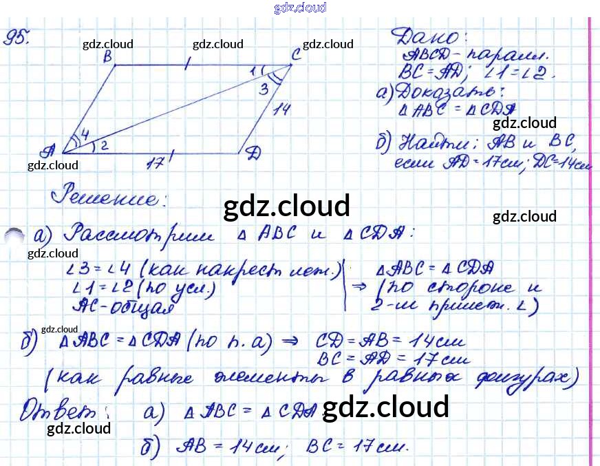 Ответ на задание 95 Учебник Геометрия за 7, 8, 9 (седьмой, восьмой, девятый) класс Атанасян, Бутузов, Кадомцев 2010