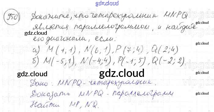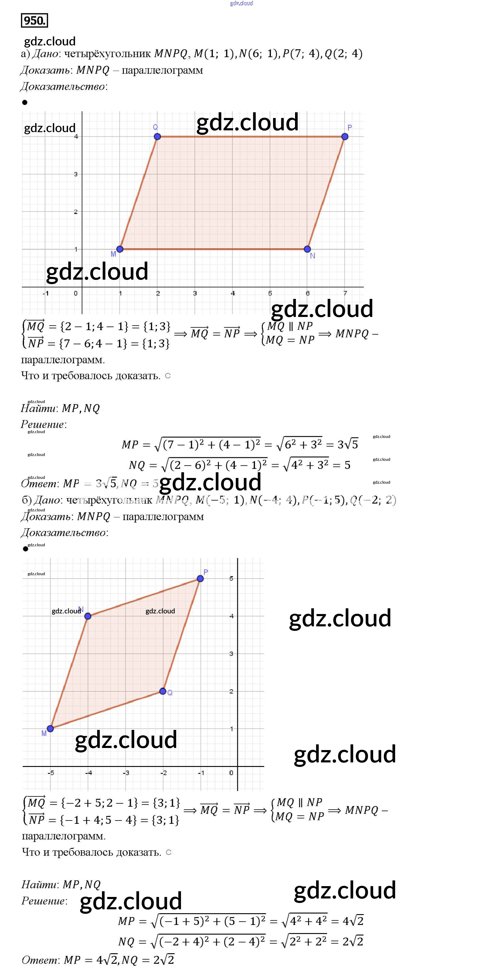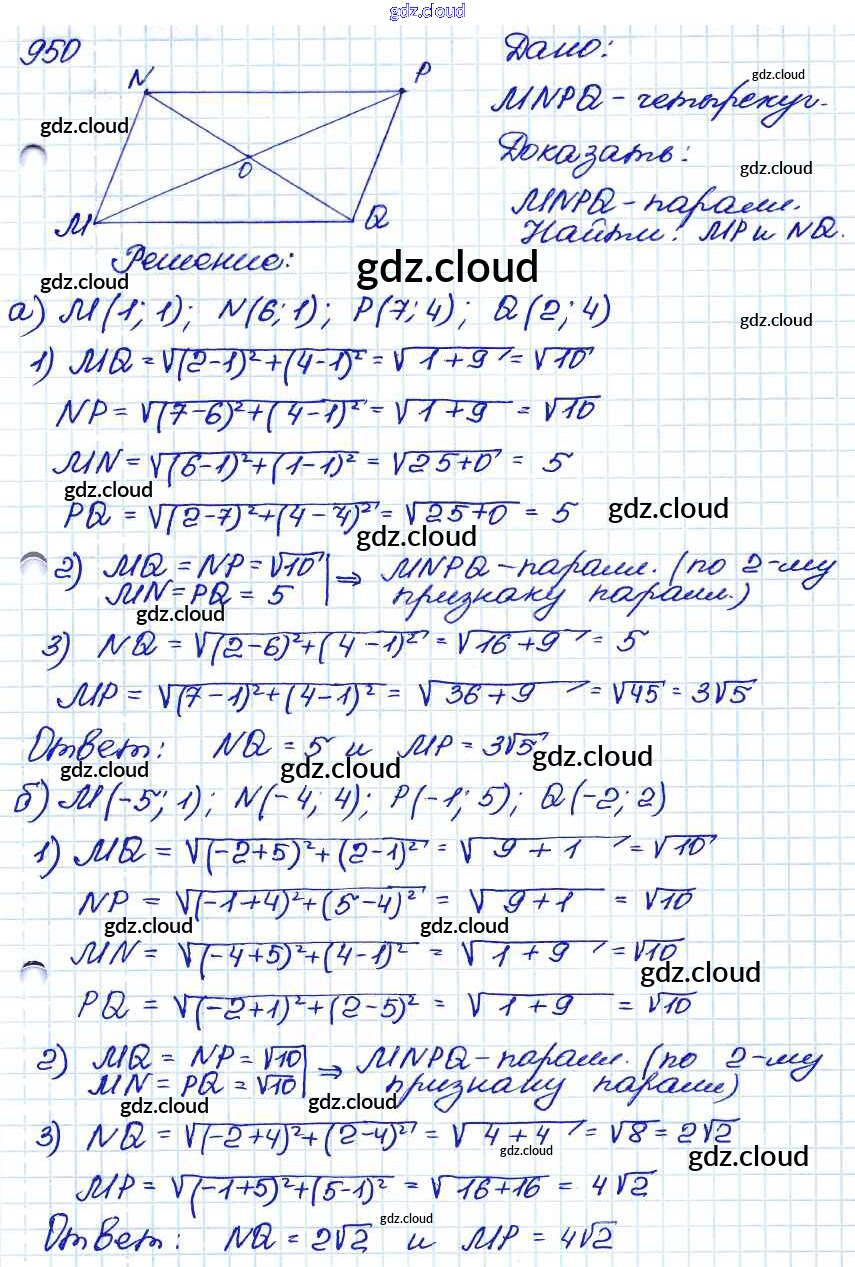 Ответ на задание 950 Учебник Геометрия за 7, 8, 9 (седьмой, восьмой, девятый) класс Атанасян, Бутузов, Кадомцев 2010