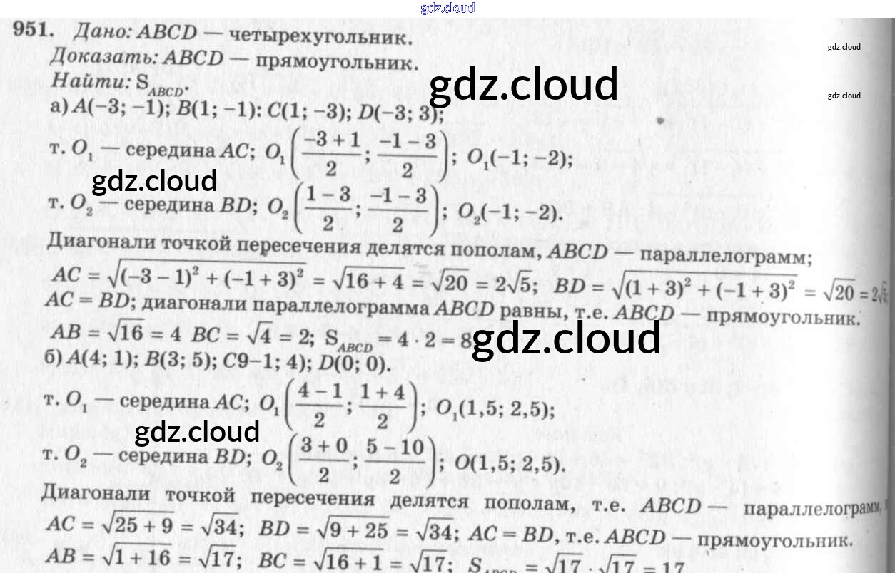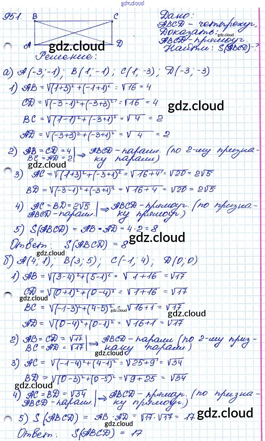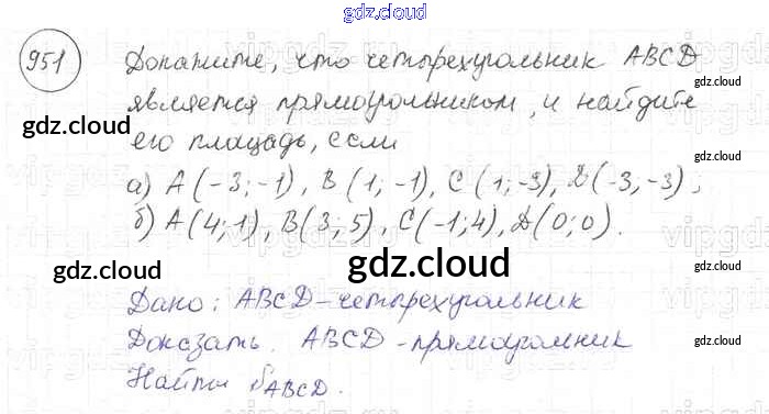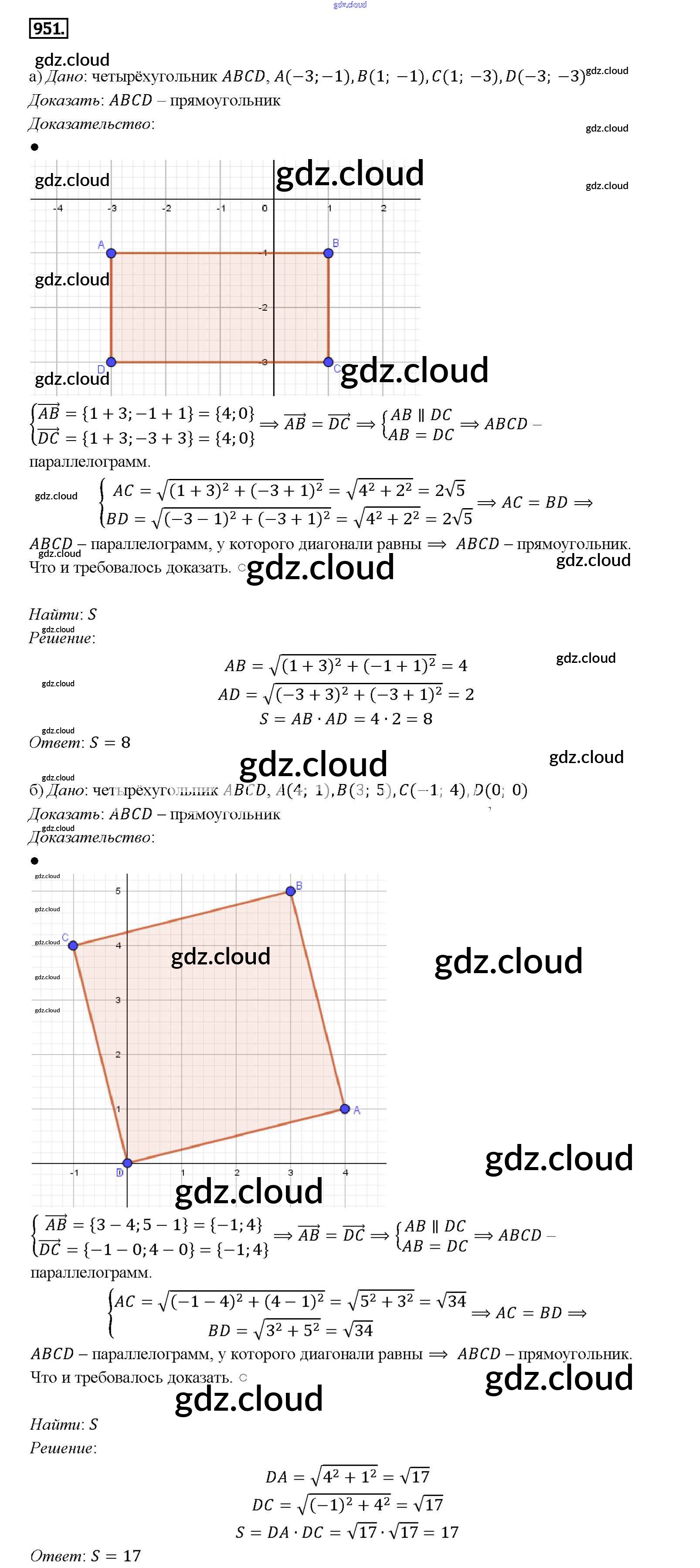 Ответ на задание 951 Учебник Геометрия за 7, 8, 9 (седьмой, восьмой, девятый) класс Атанасян, Бутузов, Кадомцев 2010