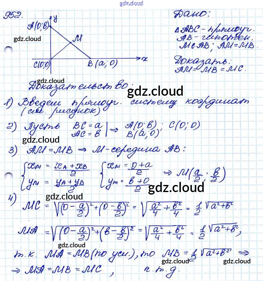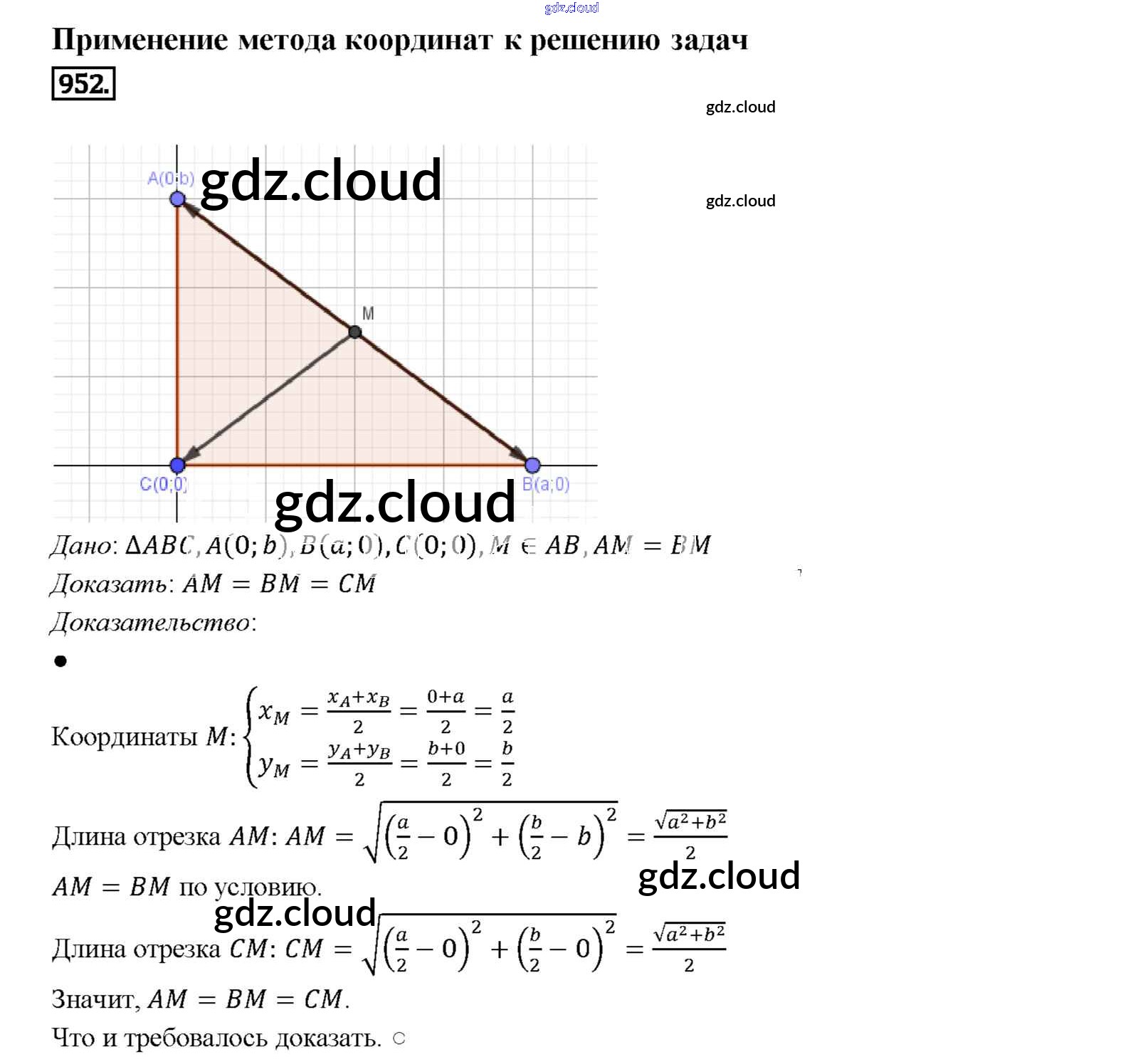 Ответ на задание 952 Учебник Геометрия за 7, 8, 9 (седьмой, восьмой, девятый) класс Атанасян, Бутузов, Кадомцев 2010