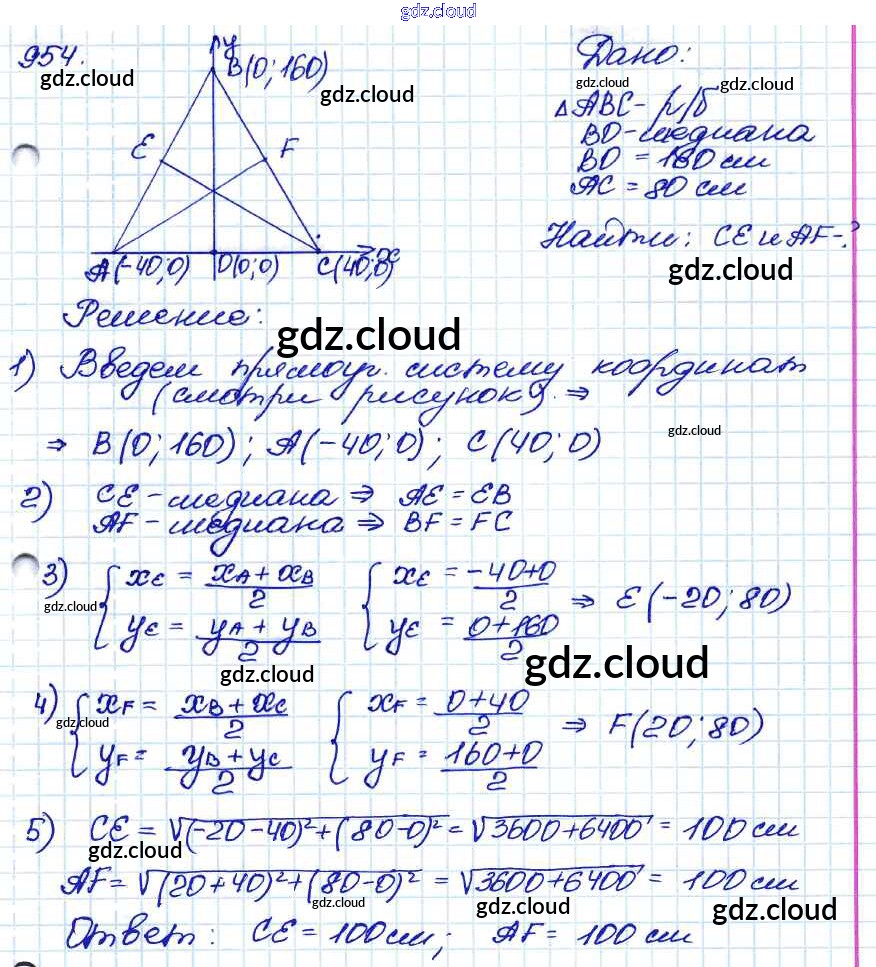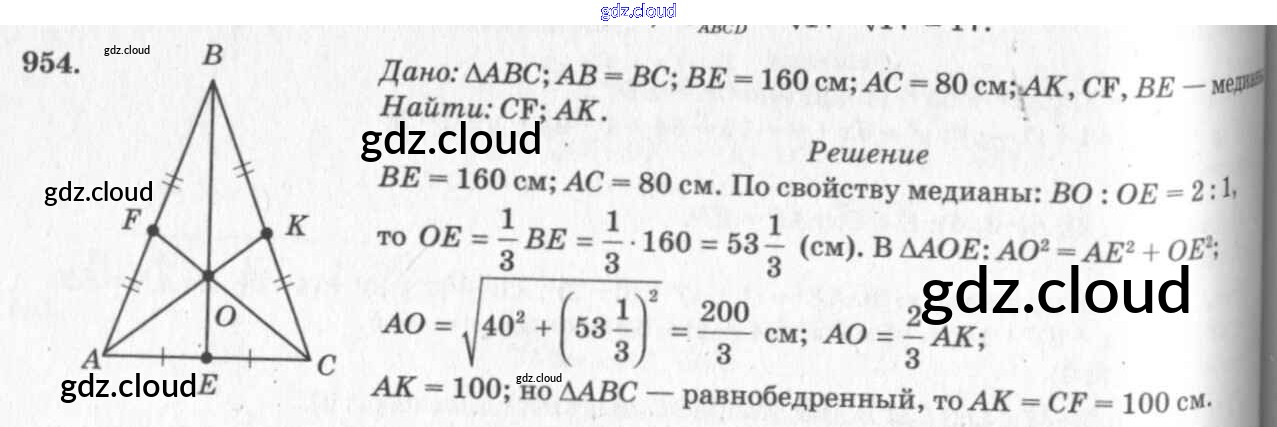 Ответ на задание 954 Учебник Геометрия за 7, 8, 9 (седьмой, восьмой, девятый) класс Атанасян, Бутузов, Кадомцев 2010