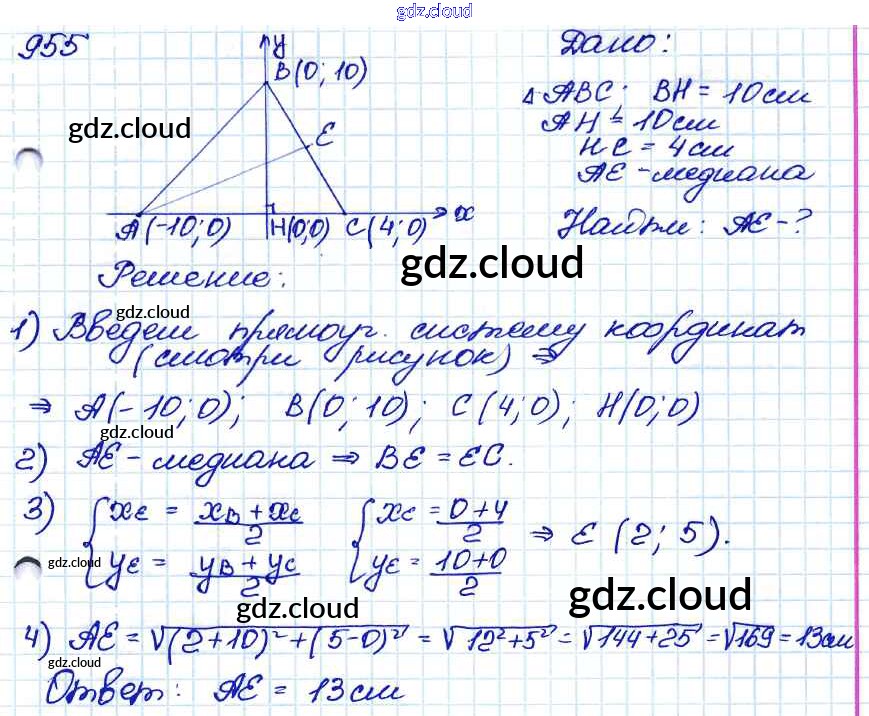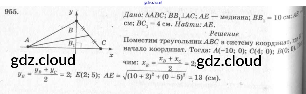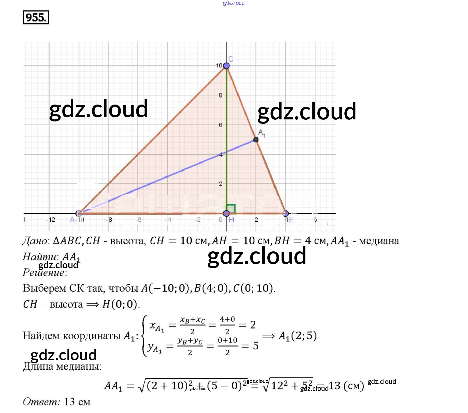 Ответ на задание 955 Учебник Геометрия за 7, 8, 9 (седьмой, восьмой, девятый) класс Атанасян, Бутузов, Кадомцев 2010