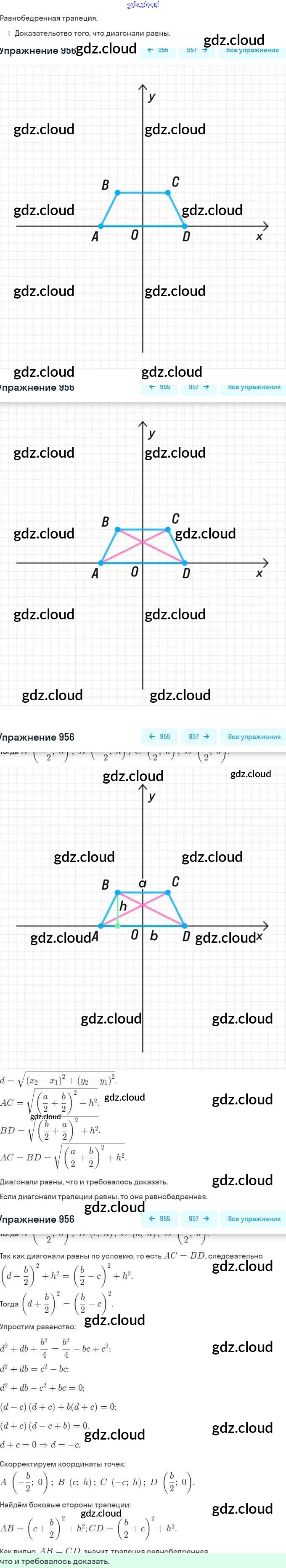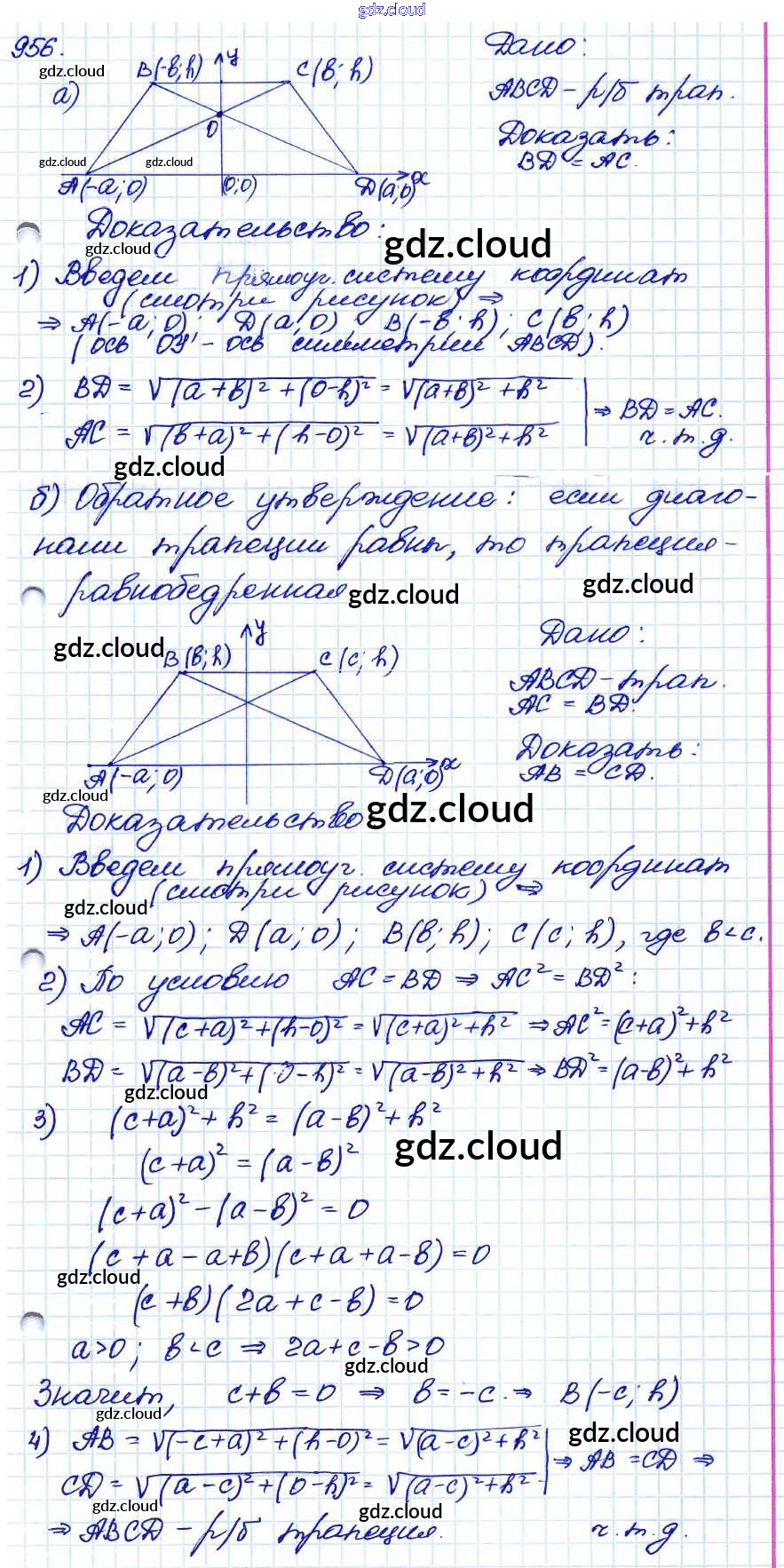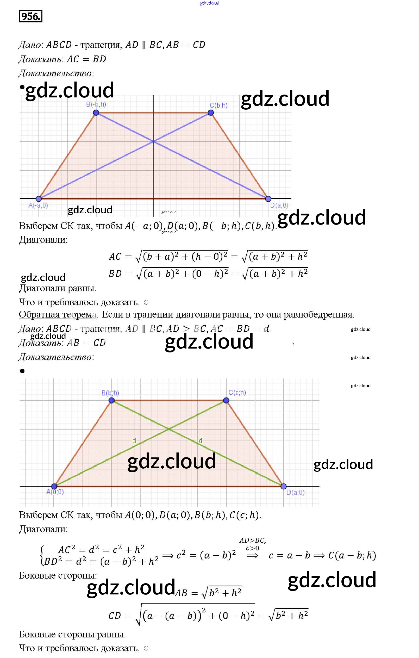 Ответ на задание 956 Учебник Геометрия за 7, 8, 9 (седьмой, восьмой, девятый) класс Атанасян, Бутузов, Кадомцев 2010