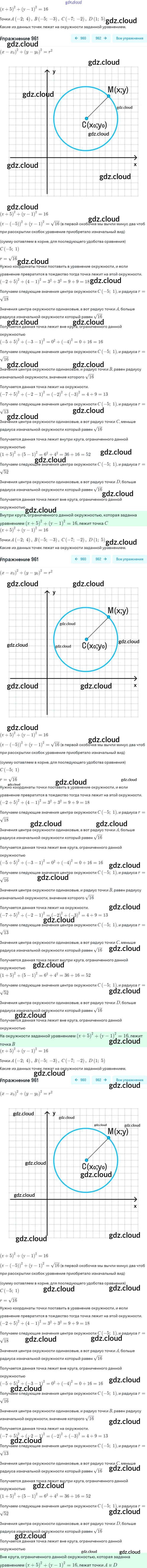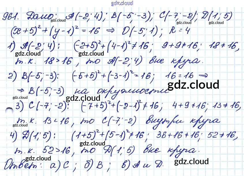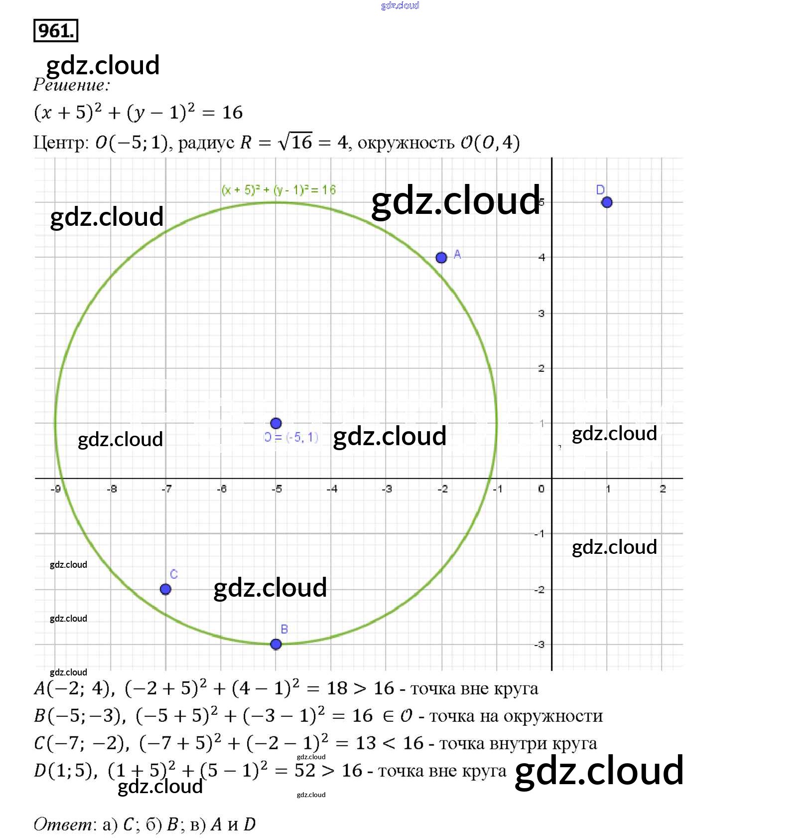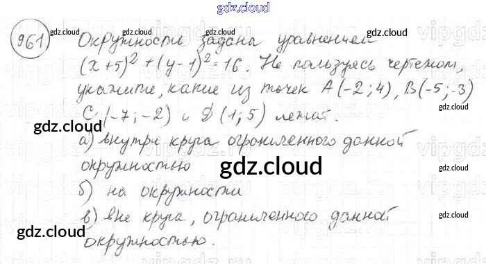 Ответ на задание 961 Учебник Геометрия за 7, 8, 9 (седьмой, восьмой, девятый) класс Атанасян, Бутузов, Кадомцев 2010