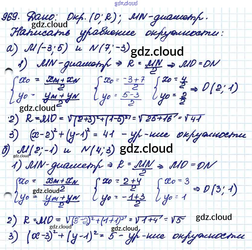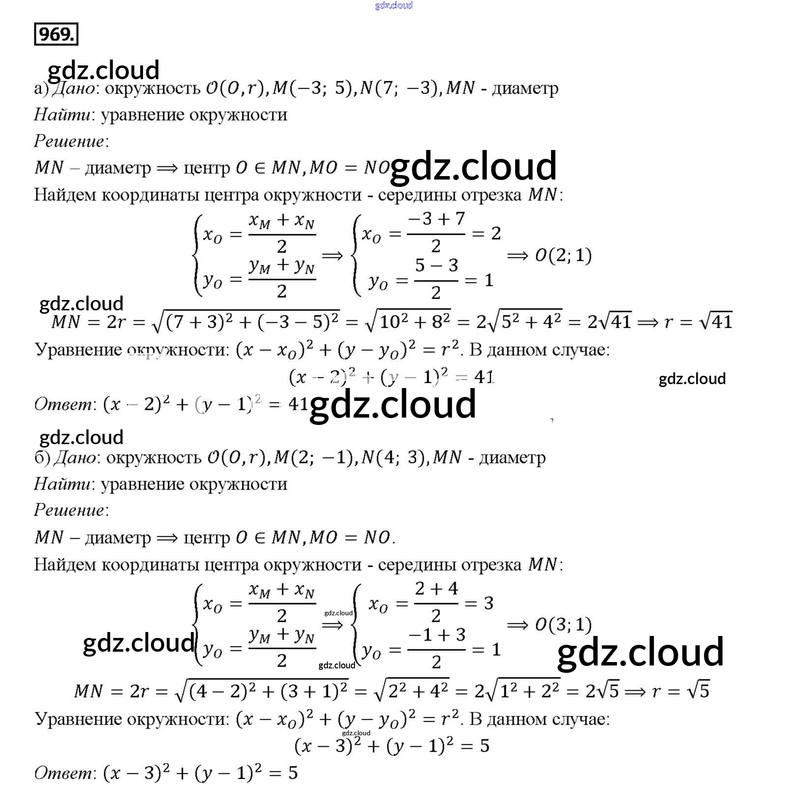 Ответ на задание 969 Учебник Геометрия за 7, 8, 9 (седьмой, восьмой, девятый) класс Атанасян, Бутузов, Кадомцев 2010