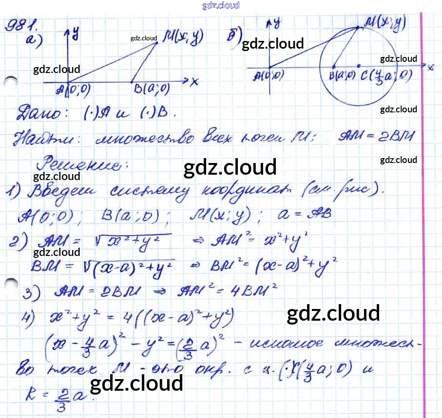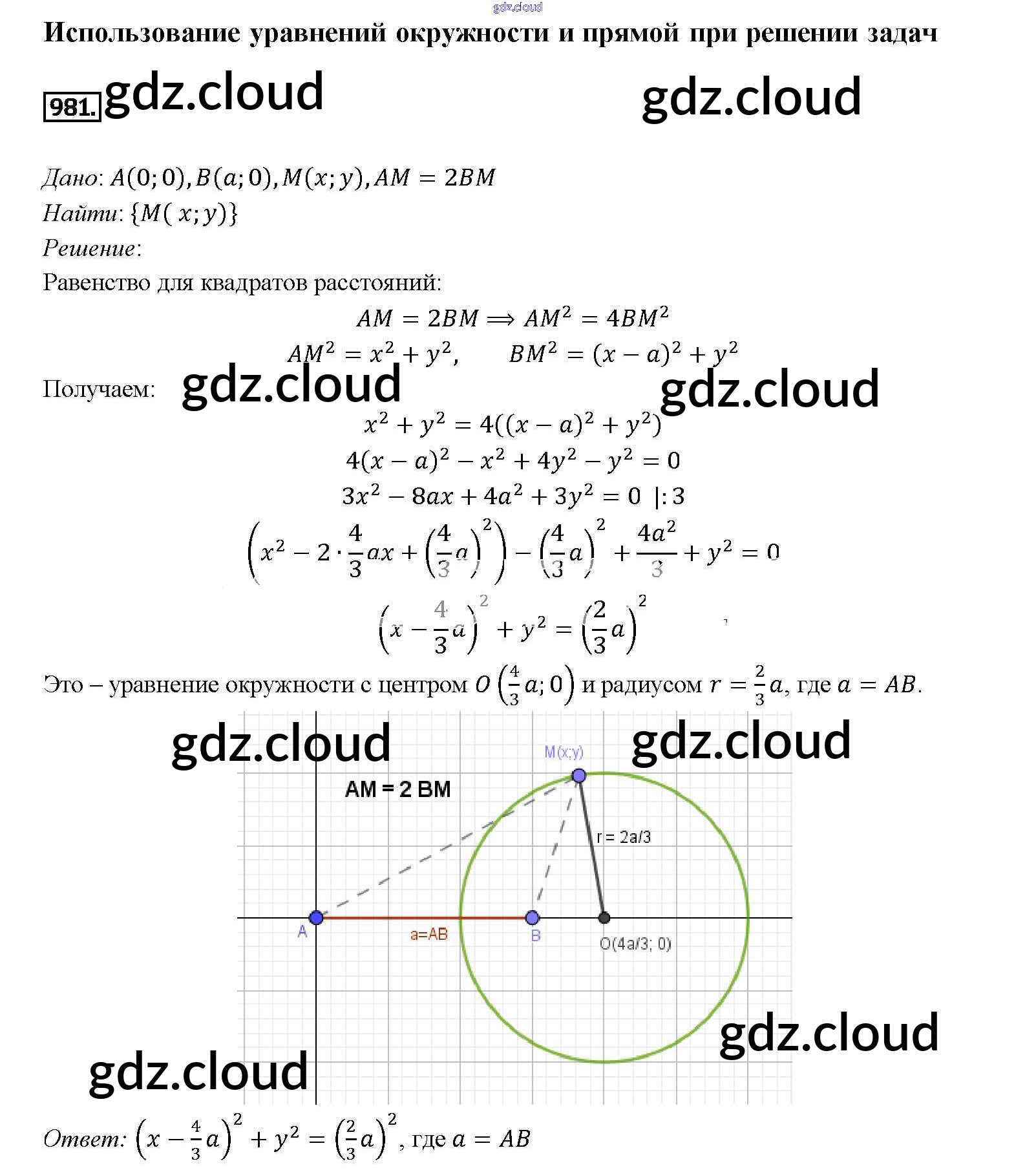 Ответ на задание 981 Учебник Геометрия за 7, 8, 9 (седьмой, восьмой, девятый) класс Атанасян, Бутузов, Кадомцев 2010