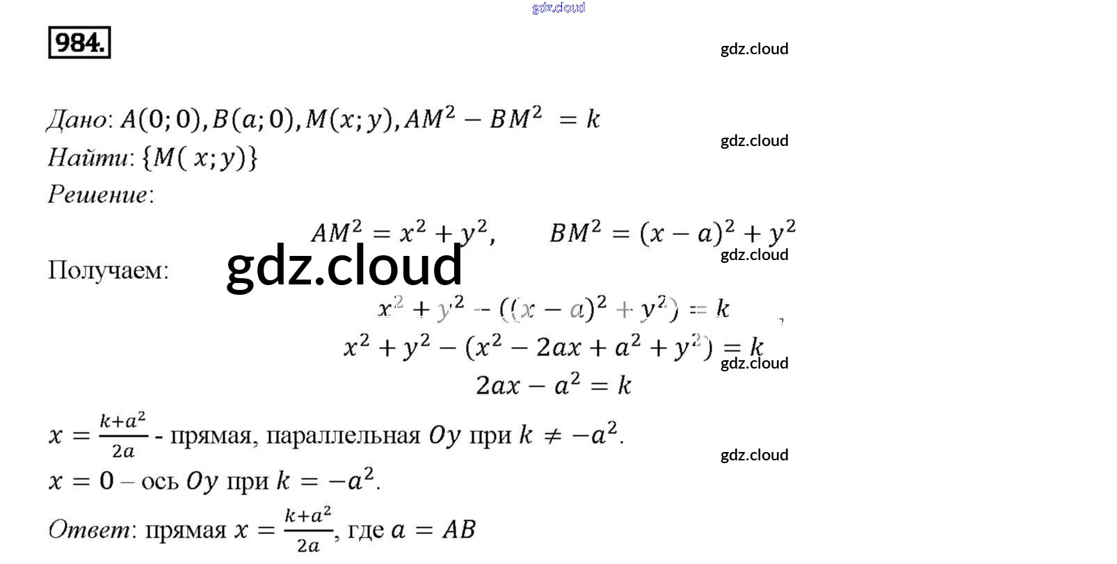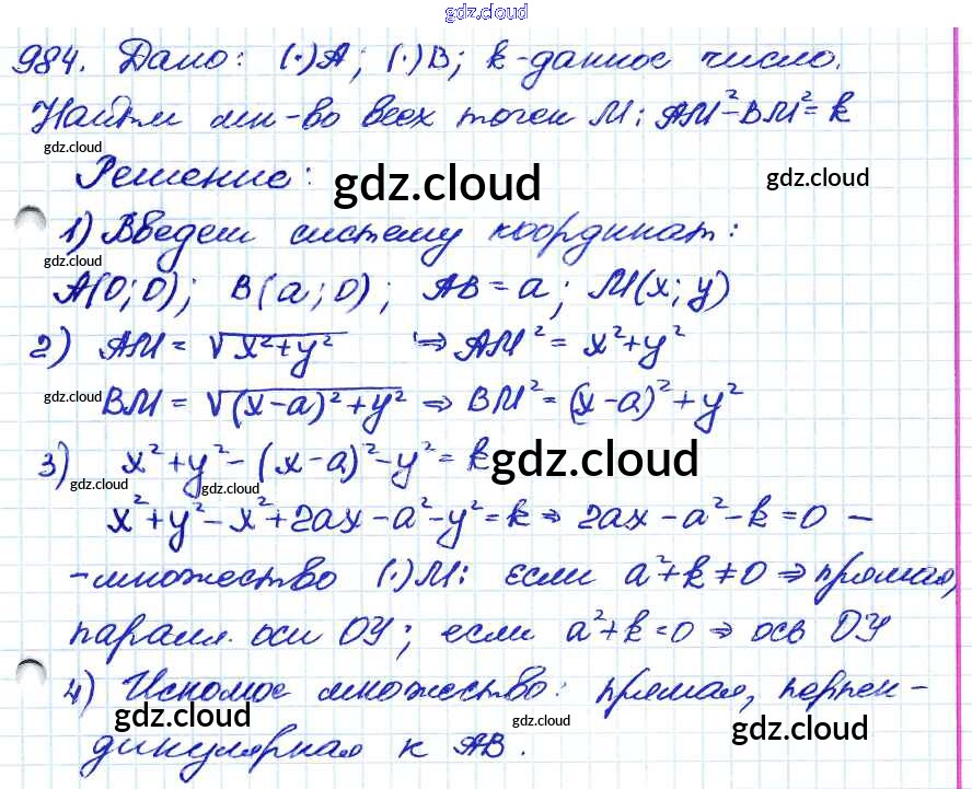 Ответ на задание 984 Учебник Геометрия за 7, 8, 9 (седьмой, восьмой, девятый) класс Атанасян, Бутузов, Кадомцев 2010