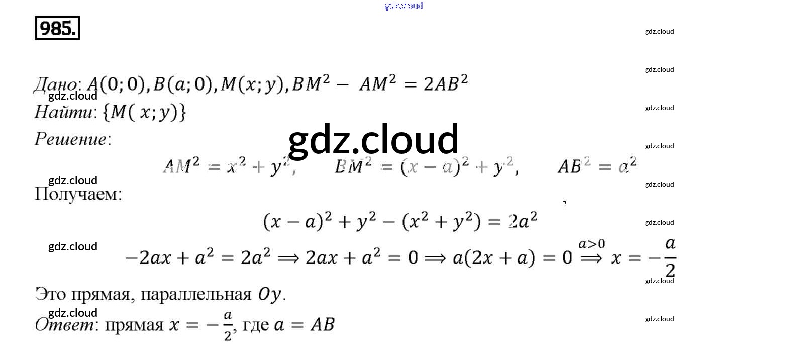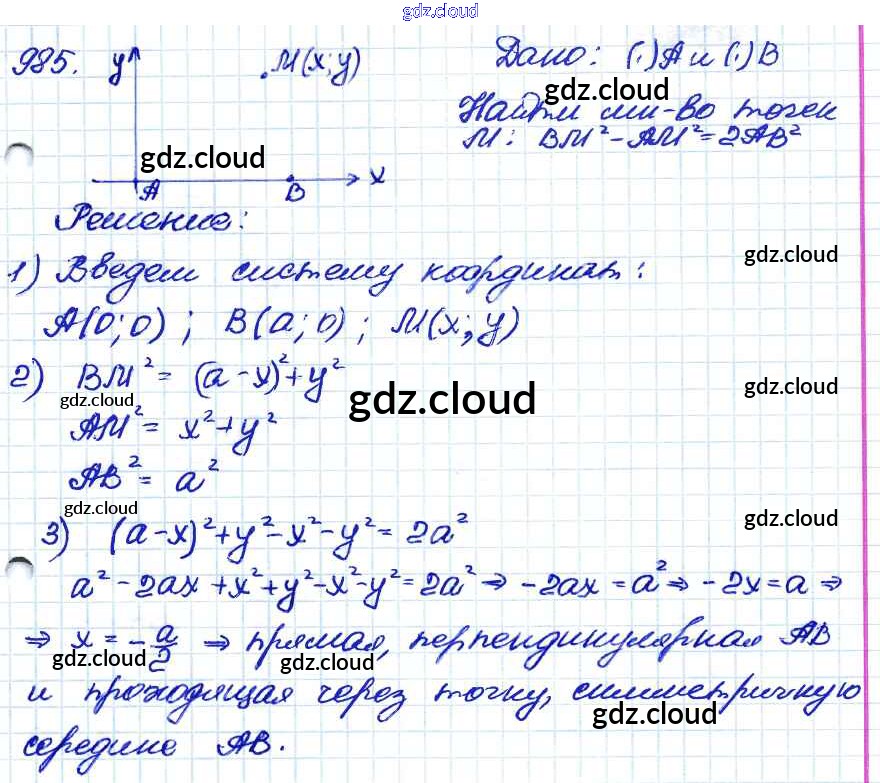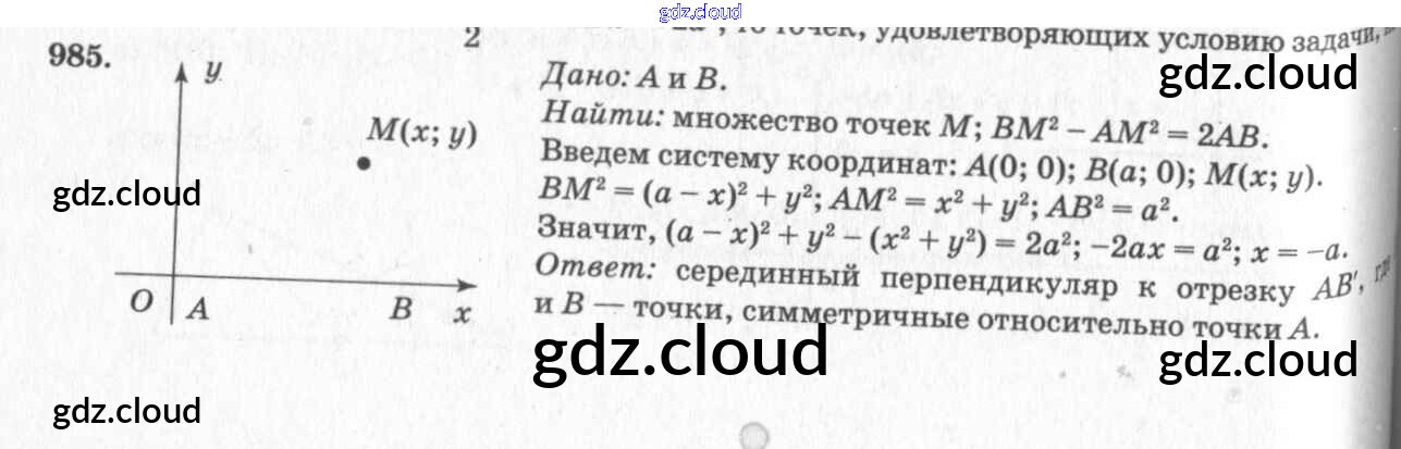 Ответ на задание 985 Учебник Геометрия за 7, 8, 9 (седьмой, восьмой, девятый) класс Атанасян, Бутузов, Кадомцев 2010