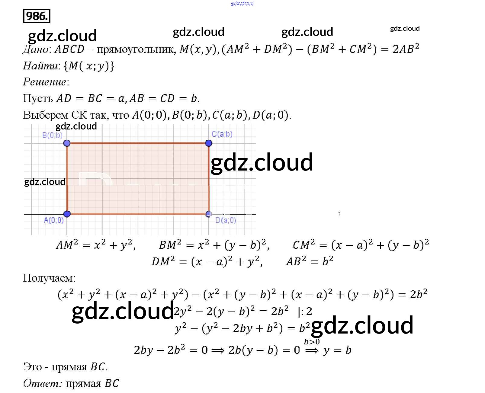 Ответ на задание 986 Учебник Геометрия за 7, 8, 9 (седьмой, восьмой, девятый) класс Атанасян, Бутузов, Кадомцев 2010