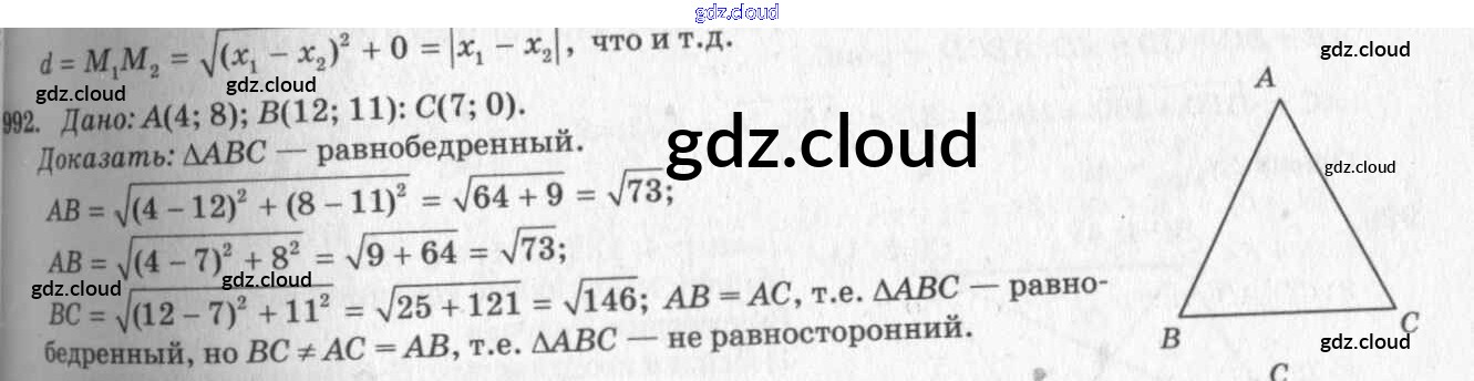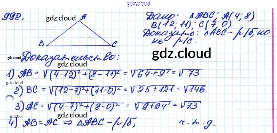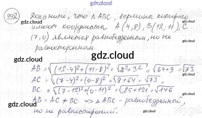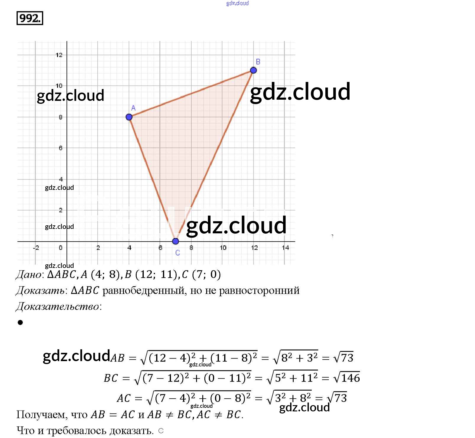 Ответ на задание 992 Учебник Геометрия за 7, 8, 9 (седьмой, восьмой, девятый) класс Атанасян, Бутузов, Кадомцев 2010