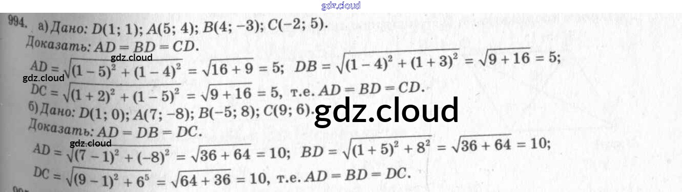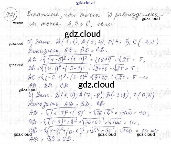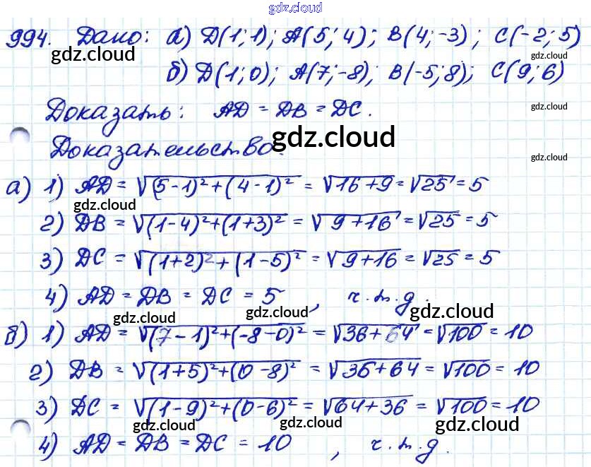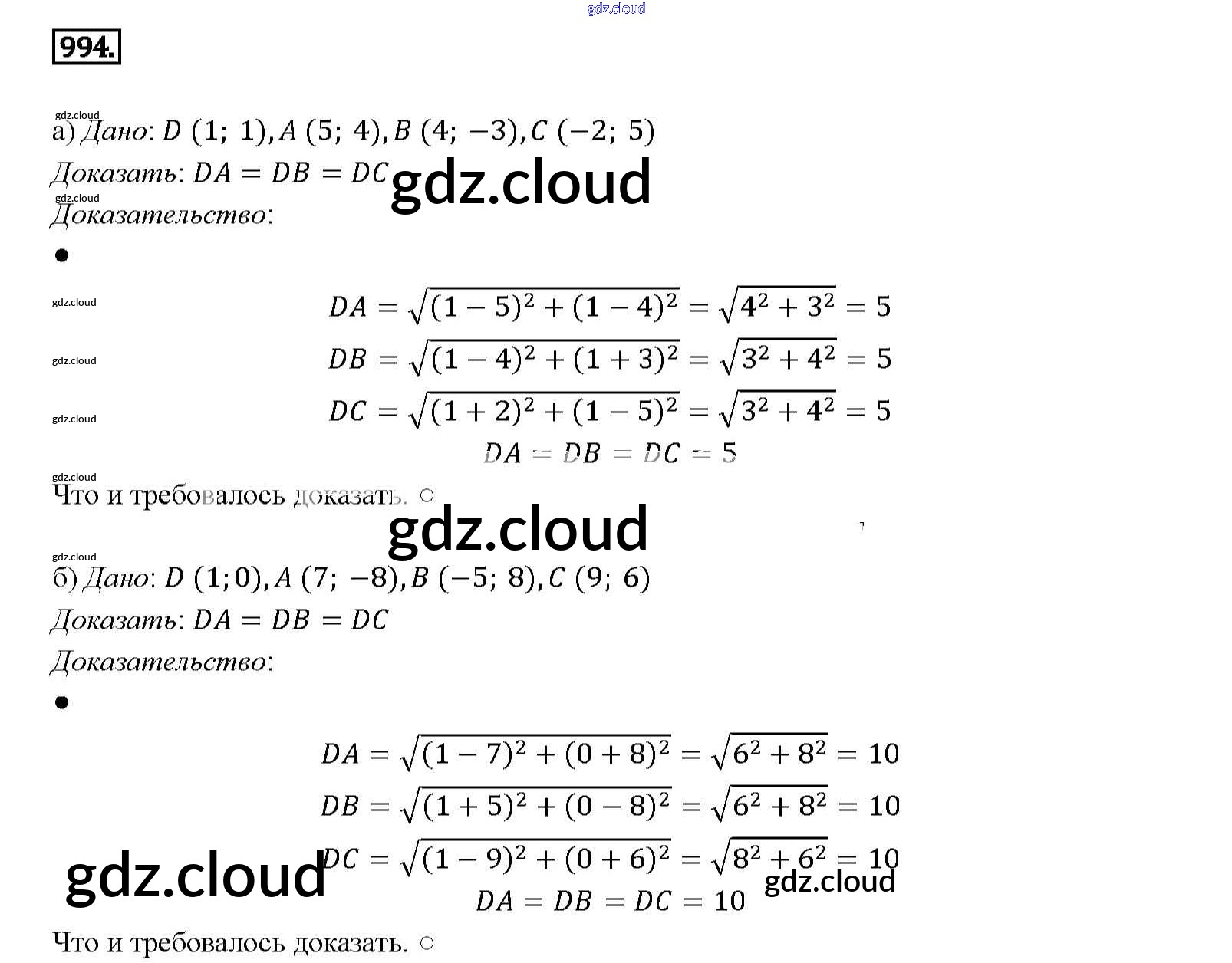 Ответ на задание 994 Учебник Геометрия за 7, 8, 9 (седьмой, восьмой, девятый) класс Атанасян, Бутузов, Кадомцев 2010