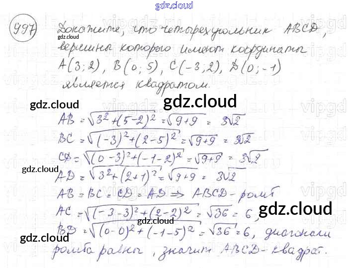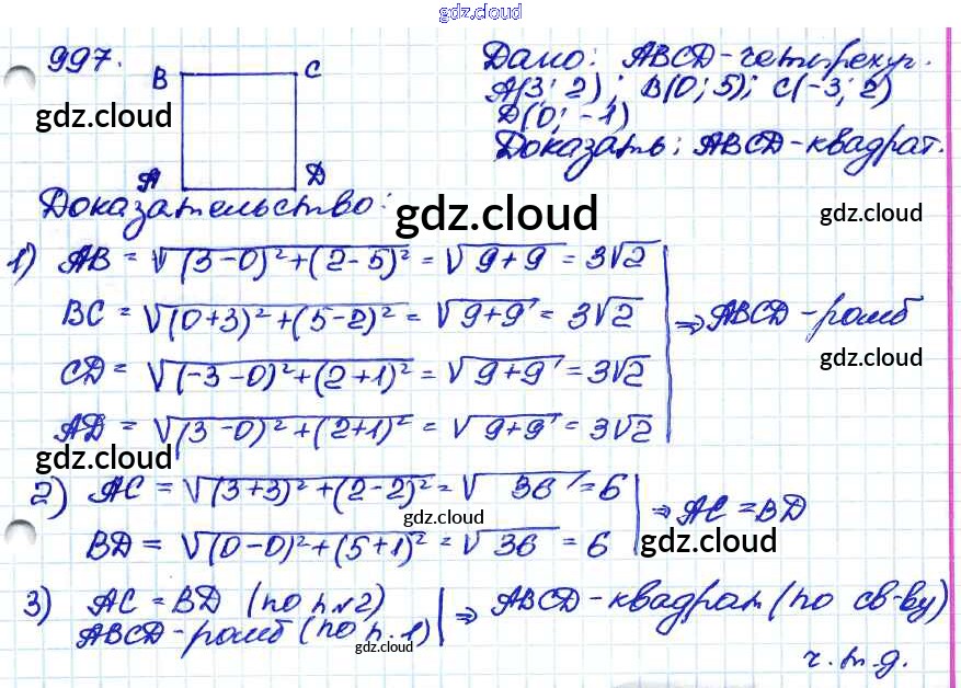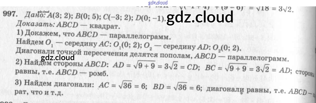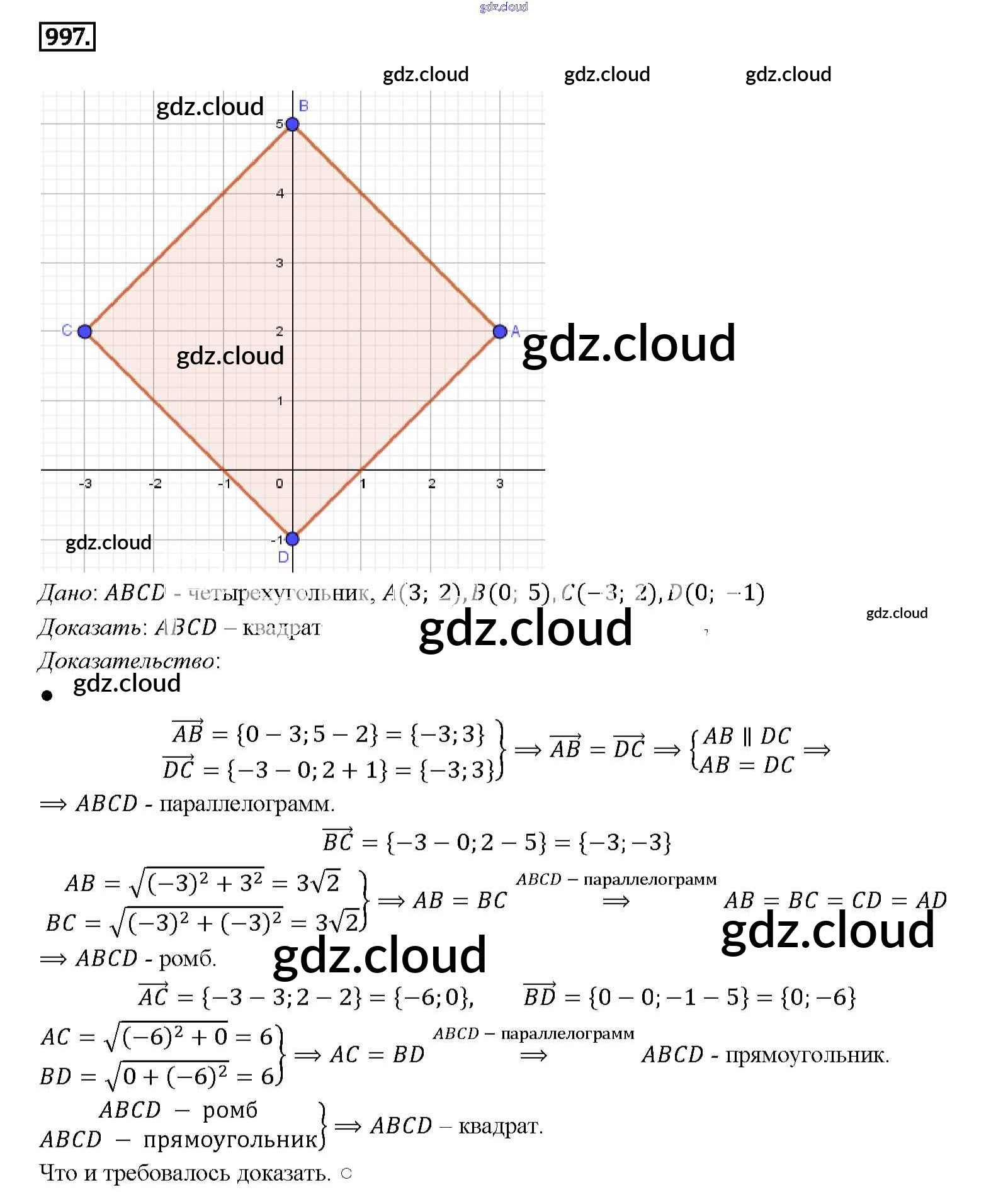 Ответ на задание 997 Учебник Геометрия за 7, 8, 9 (седьмой, восьмой, девятый) класс Атанасян, Бутузов, Кадомцев 2010