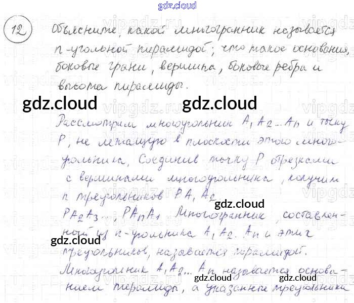 Ответ на задание 12 Учебник Геометрия за 7, 8, 9 (седьмой, восьмой, девятый) класс Атанасян, Бутузов, Кадомцев 2010