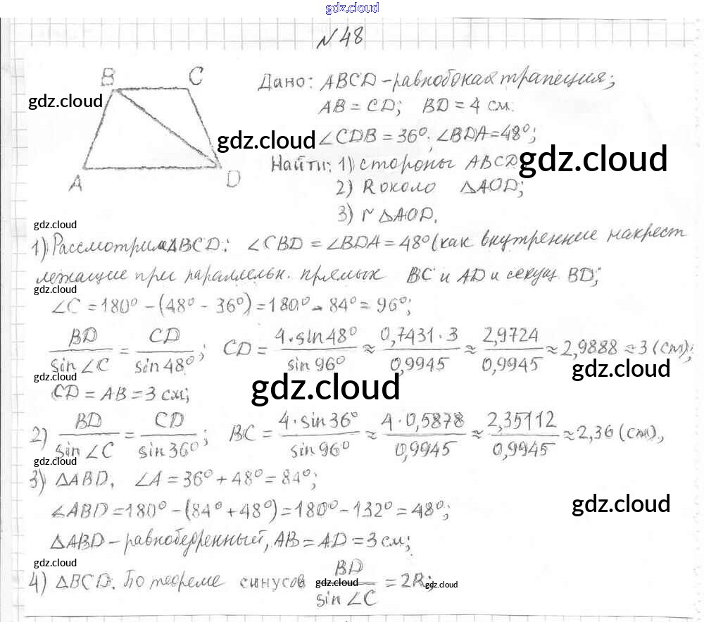 Ответ на задание 48 Дидактические материалы Геометрия за 9 (девятый) класс Мерзляк, Полонский, Рабинович Алгоритм успеха 2017