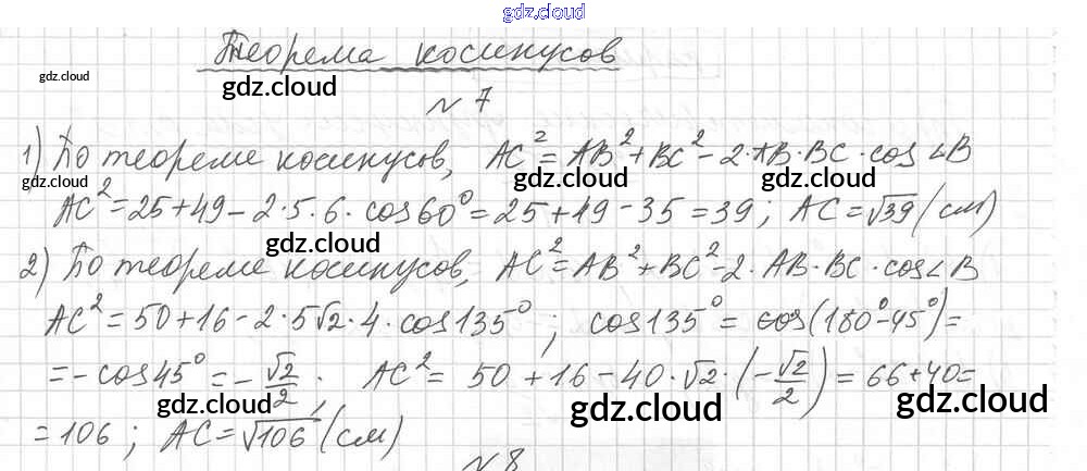 Ответ на задание 7 Дидактические материалы Геометрия за 9 (девятый) класс Мерзляк, Полонский, Рабинович Алгоритм успеха 2017