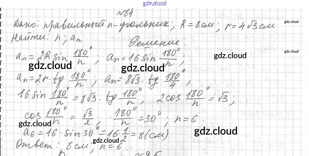 Ответ на задание 84 Дидактические материалы Геометрия за 9 (девятый) класс Мерзляк, Полонский, Рабинович Алгоритм успеха 2017