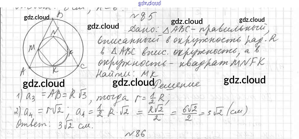 Ответ на задание 85 Дидактические материалы Геометрия за 9 (девятый) класс Мерзляк, Полонский, Рабинович Алгоритм успеха 2017