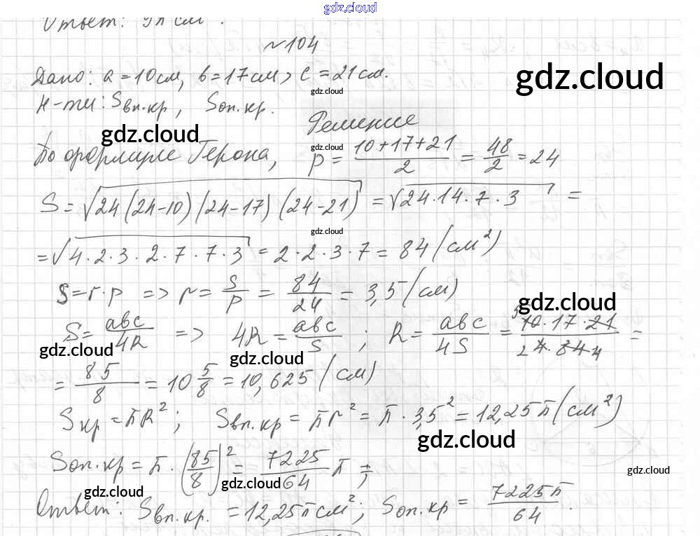 Ответ на задание 104 Дидактические материалы Геометрия за 9 (девятый) класс Мерзляк, Полонский, Рабинович Алгоритм успеха 2017