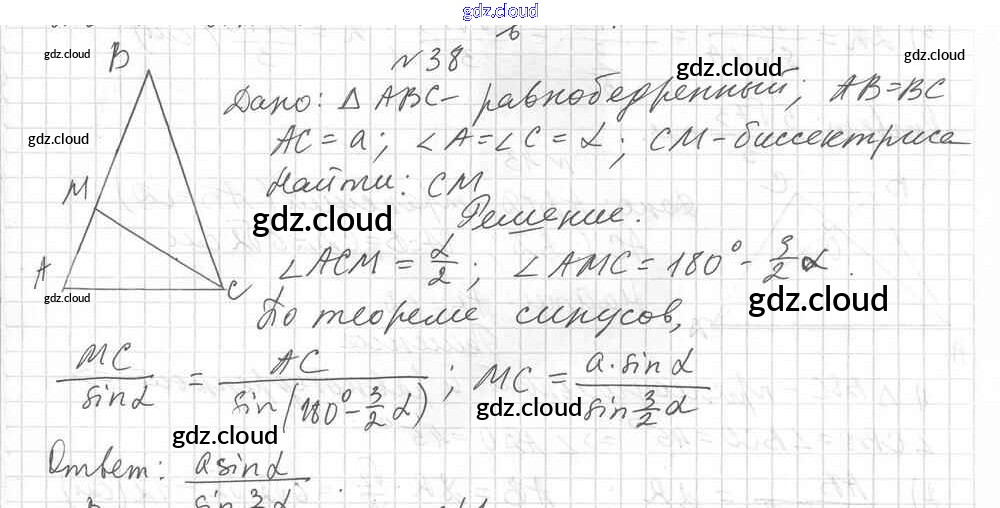 Ответ на задание 38 Дидактические материалы Геометрия за 9 (девятый) класс Мерзляк, Полонский, Рабинович Алгоритм успеха 2017