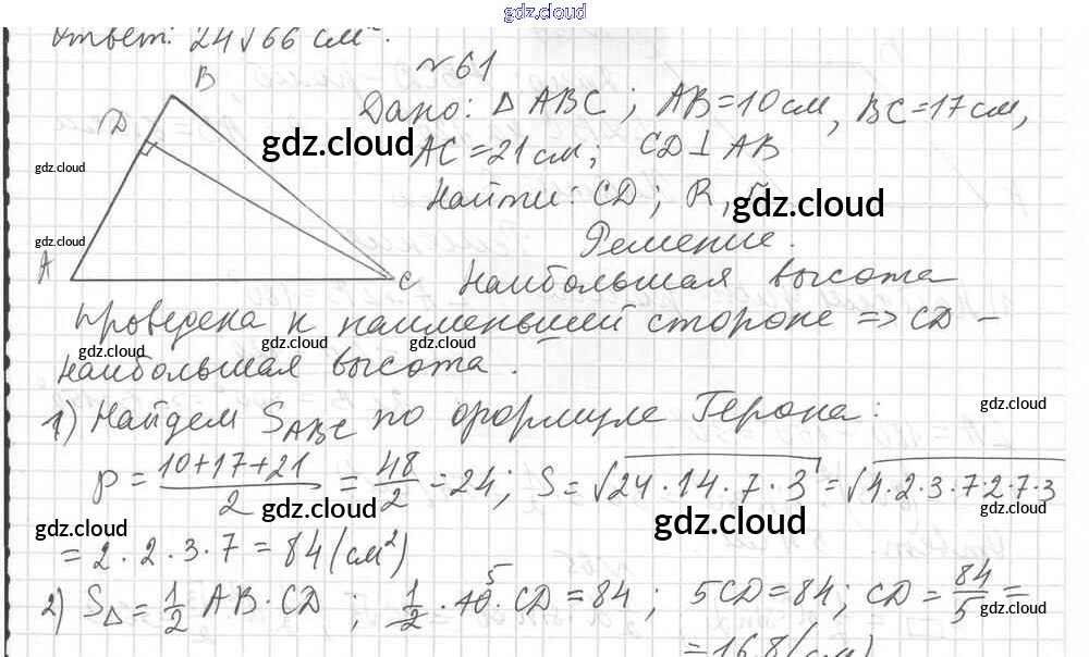 Ответ на задание 61 Дидактические материалы Геометрия за 9 (девятый) класс Мерзляк, Полонский, Рабинович Алгоритм успеха 2017