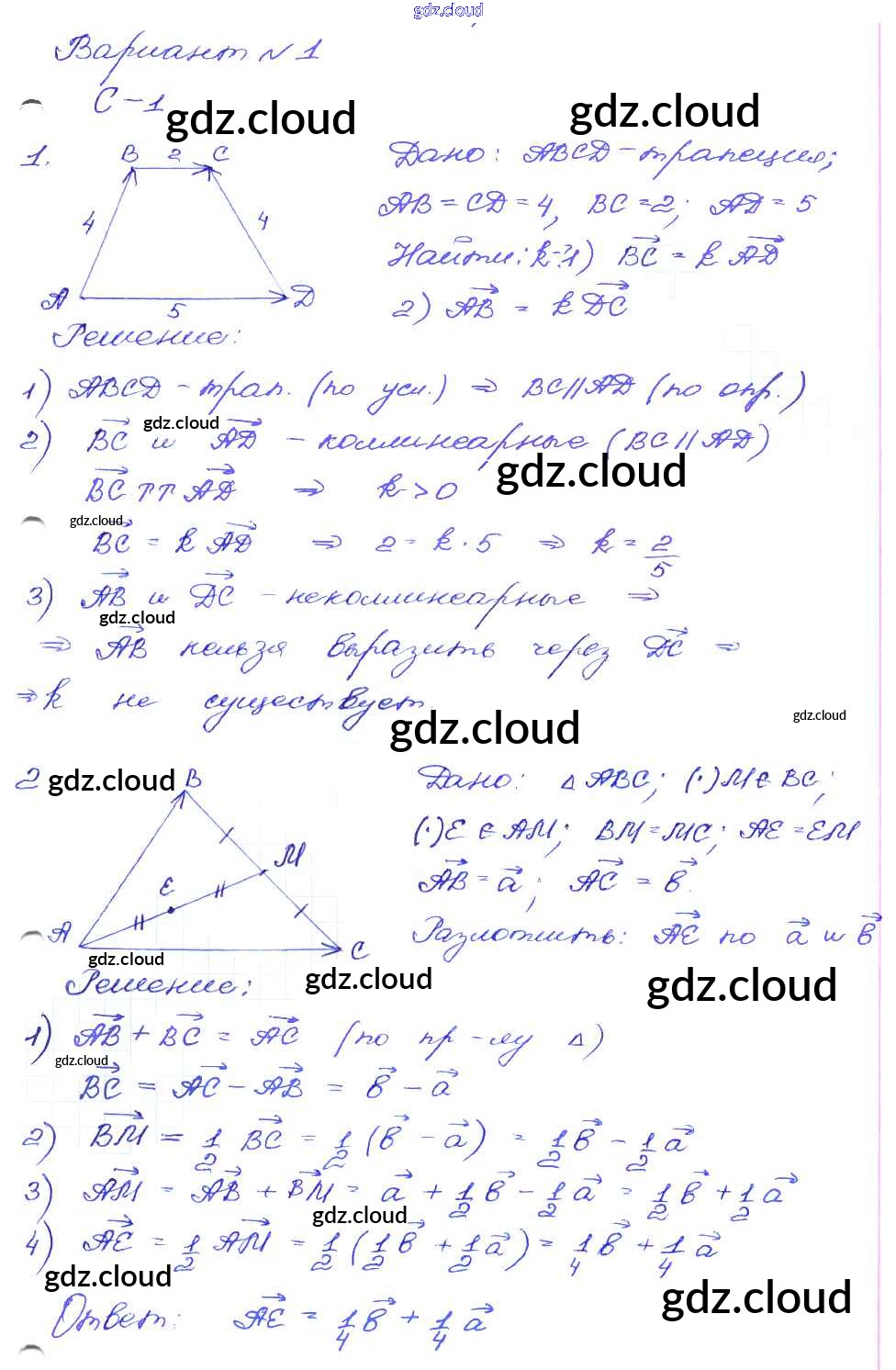 СР-1. Варианты Ответы к Самостоятельным работам по Геометрии 9 класс Дидактические материалы Зив Просвещение