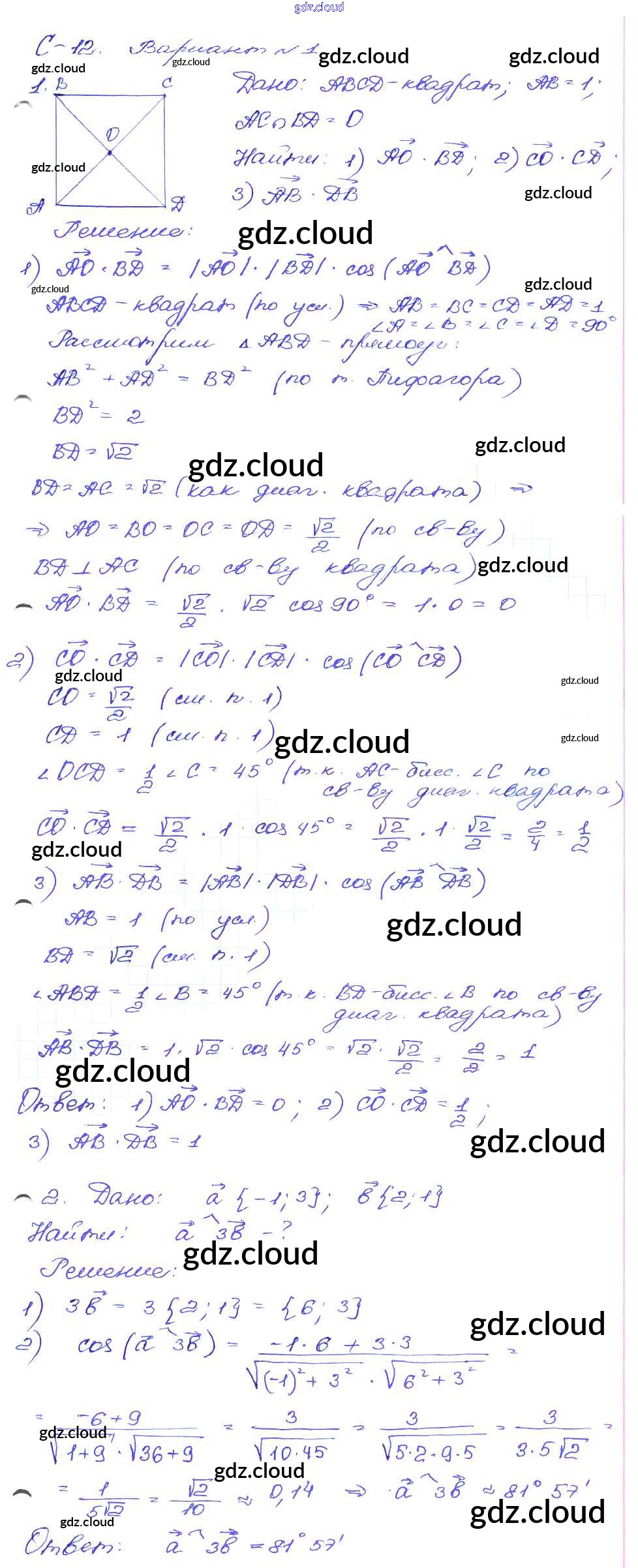 СР-12. Варианты Ответы к Самостоятельным работам по Геометрии 9 класс Дидактические материалы Зив Просвещение