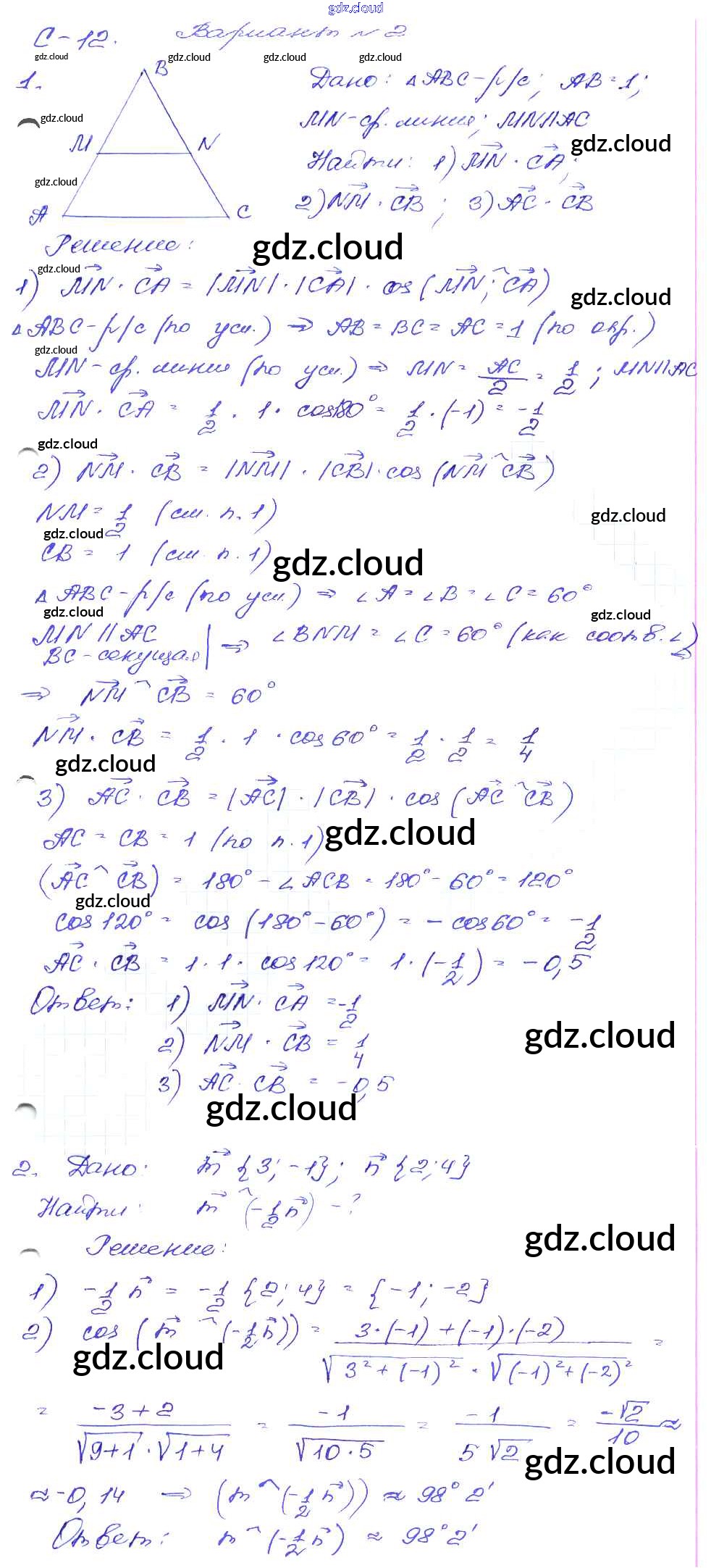 СР-12. Варианты Ответы к Самостоятельным работам по Геометрии 9 класс Дидактические материалы Зив Просвещение
