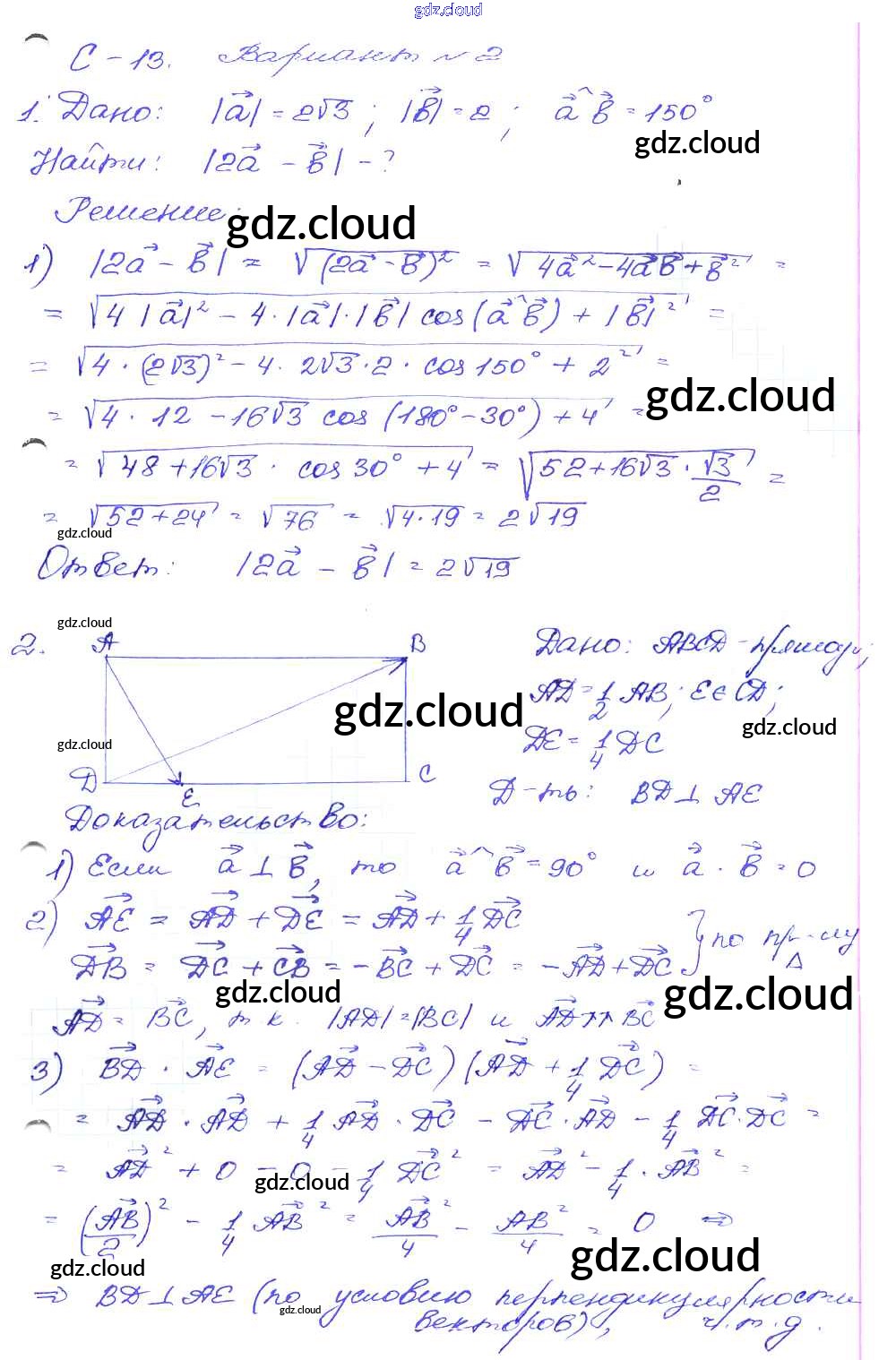 СР-13. Варианты Ответы к Самостоятельным работам по Геометрии 9 класс Дидактические материалы Зив Просвещение