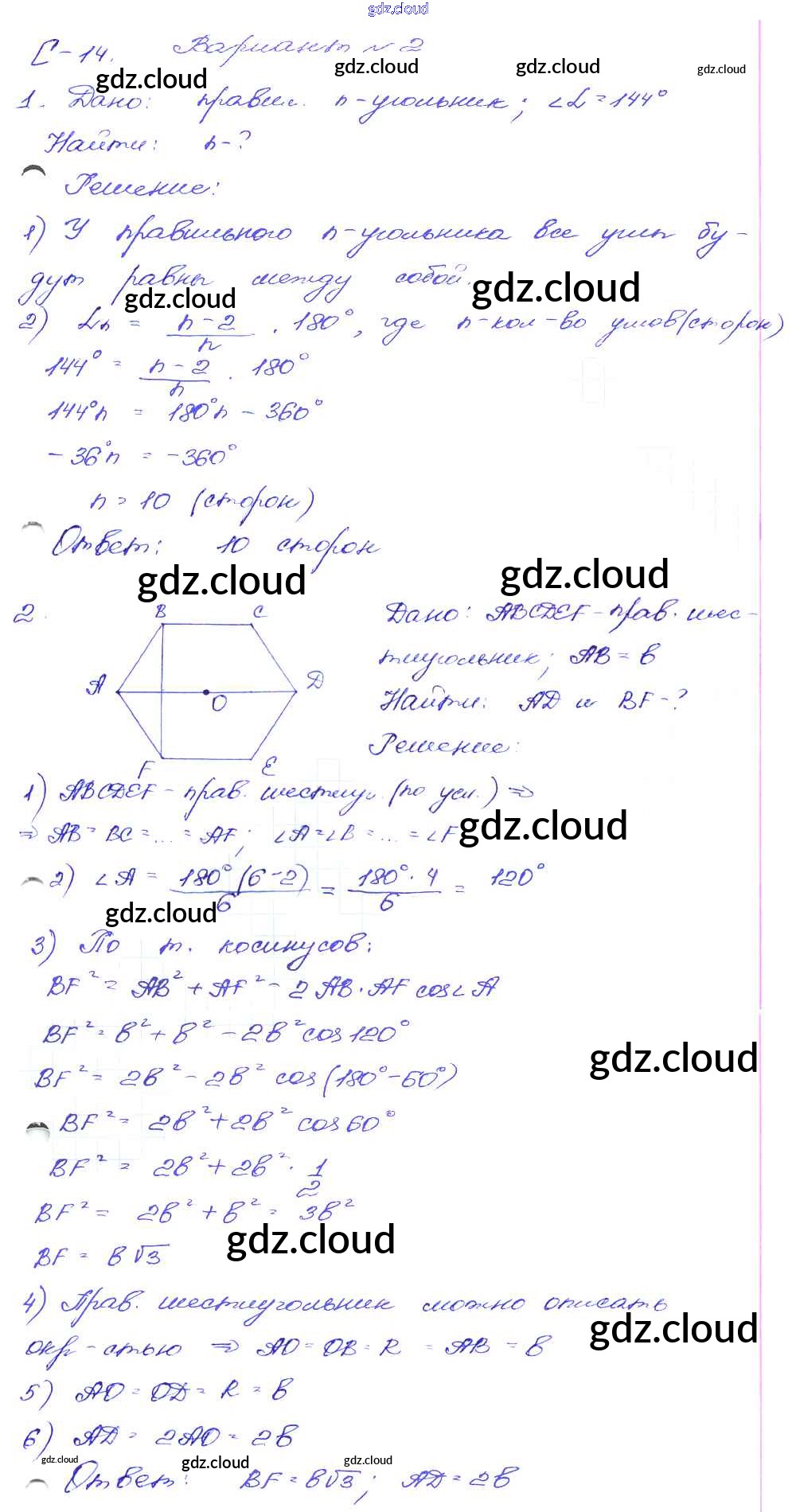 СР-14. Варианты Ответы к Самостоятельным работам по Геометрии 9 класс Дидактические материалы Зив Просвещение