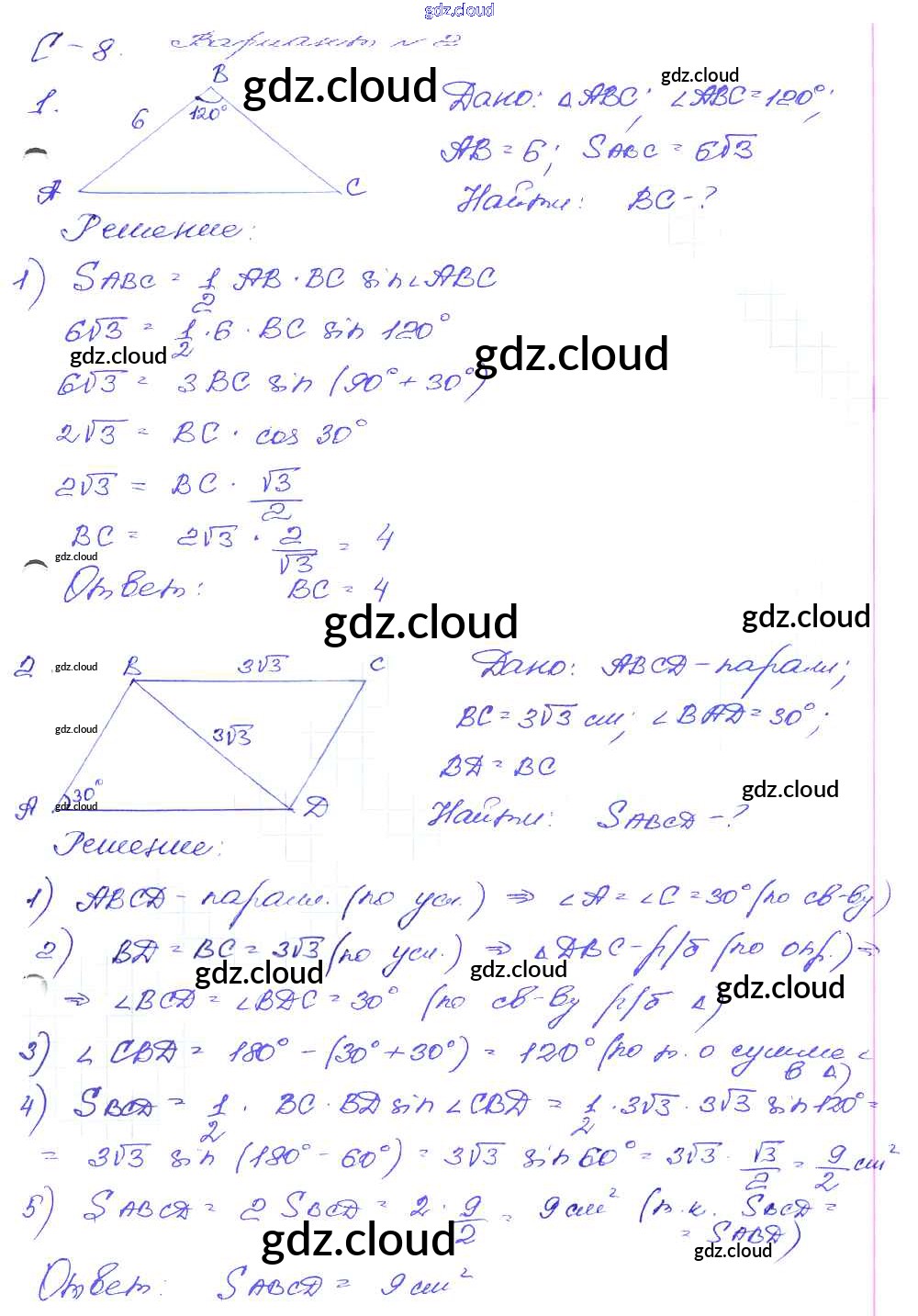 СР-8. Варианты Ответы к Самостоятельным работам по Геометрии 9 класс Дидактические материалы Зив Просвещение