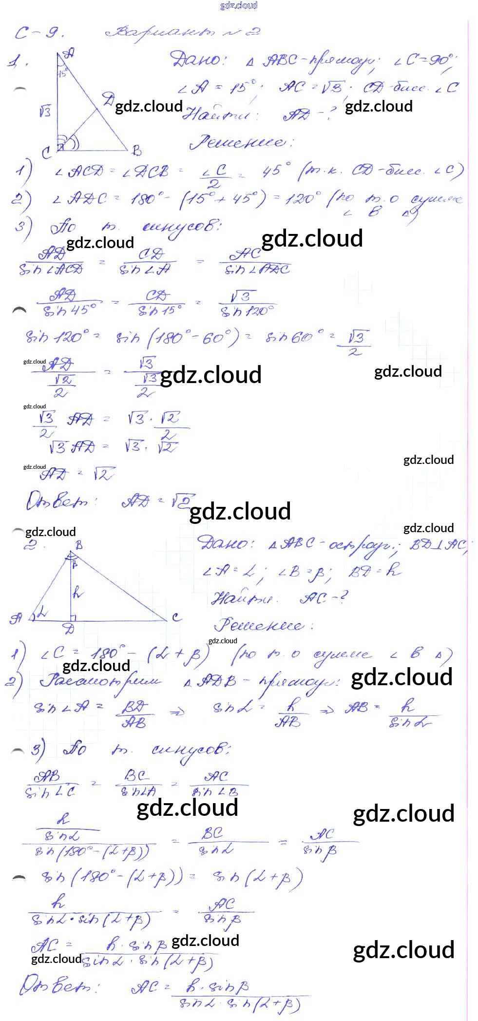 СР-9. Варианты Ответы к Самостоятельным работам по Геометрии 9 класс Дидактические материалы Зив Просвещение