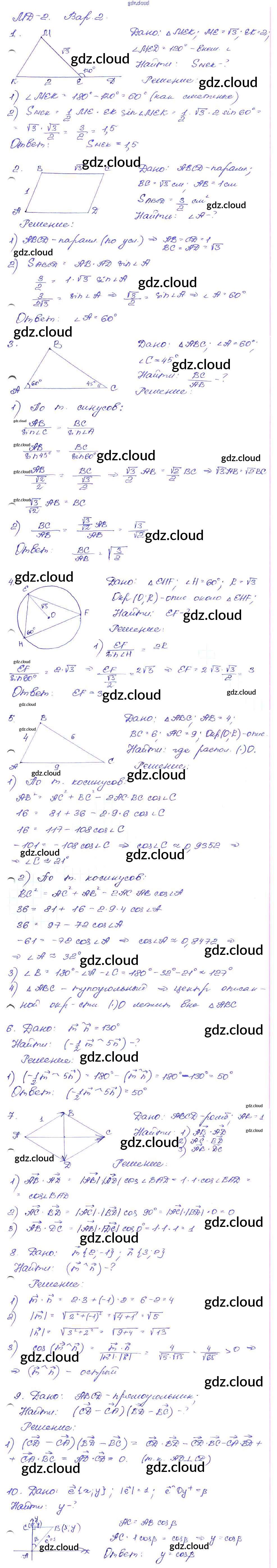 МД-2. Варианты Ответы к Математическим диктантам по Геометрии 9 класс Дидактические материалы Зив Просвещение