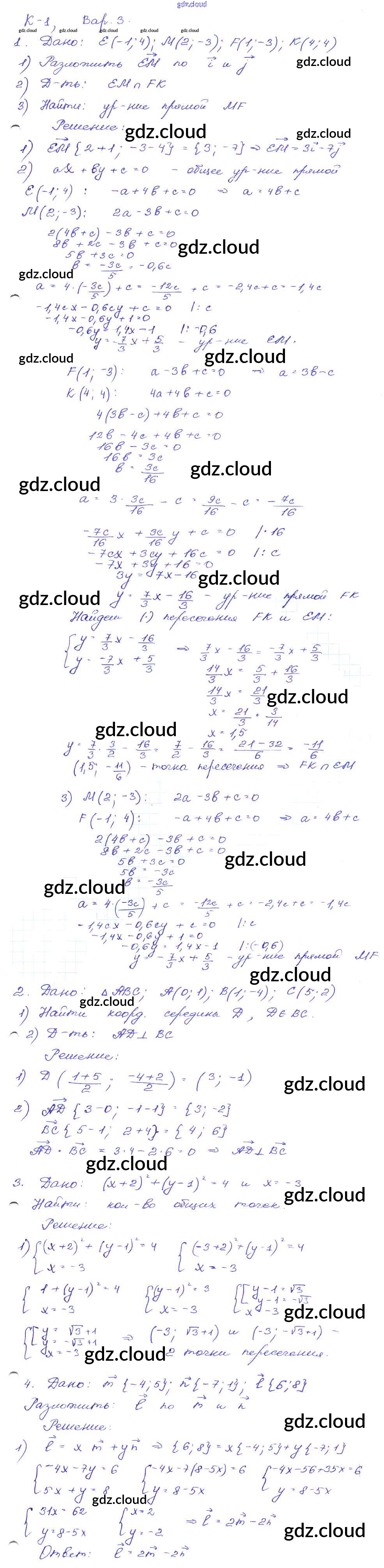 КР-1. Варианты Ответы к Контрольным работам по Геометрии 9 класс Дидактические материалы Зив Просвещение