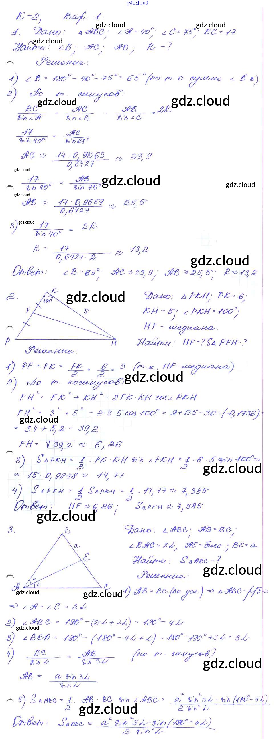 КР-2. Варианты Ответы к Контрольным работам по Геометрии 9 класс Дидактические материалы Зив Просвещение
