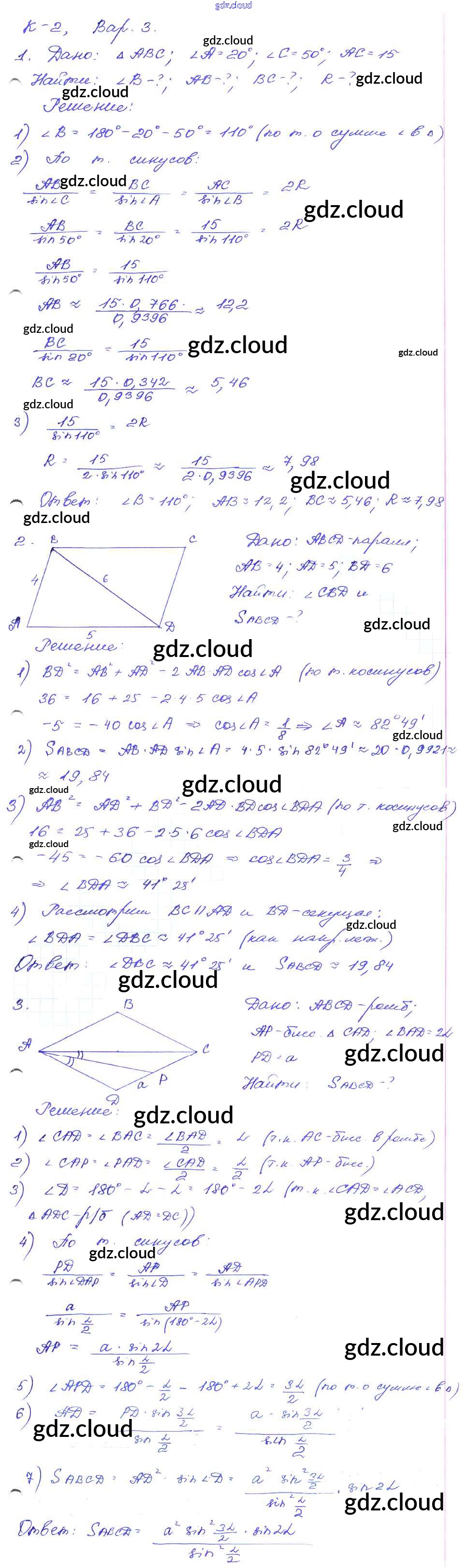 КР-2. Варианты Ответы к Контрольным работам по Геометрии 9 класс Дидактические материалы Зив Просвещение