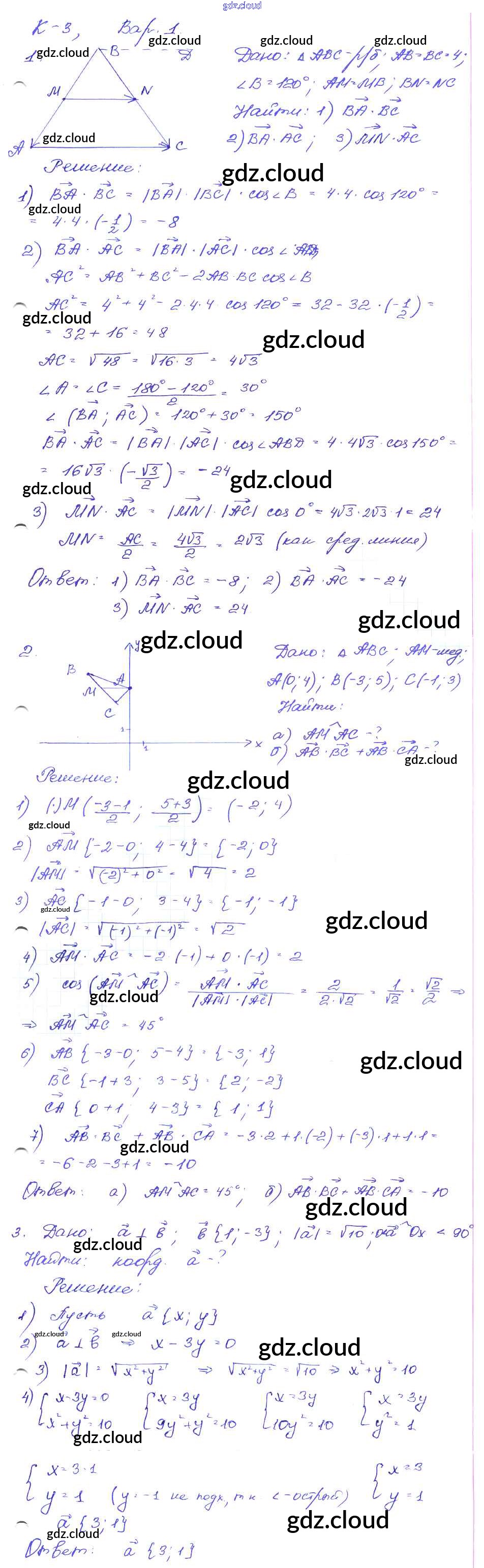 КР-3. Варианты Ответы к Контрольным работам по Геометрии 9 класс Дидактические материалы Зив Просвещение