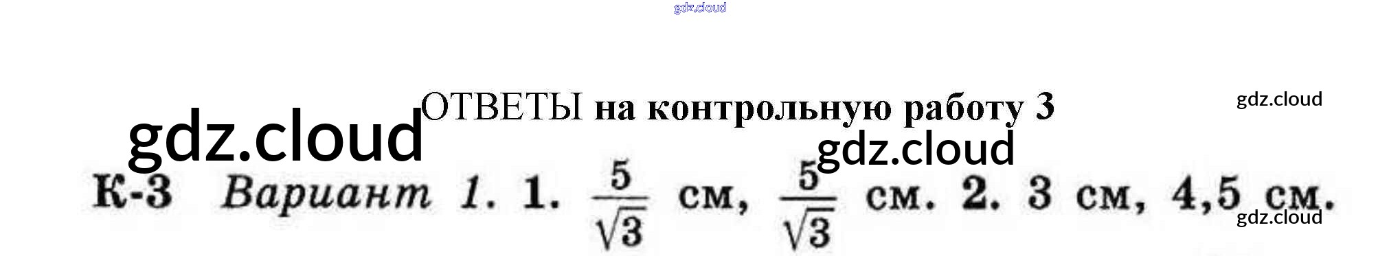 Ответы к КР №3 (Варианты) по Геометрии 9 класс Дидактические материалы Гусев Просвещение