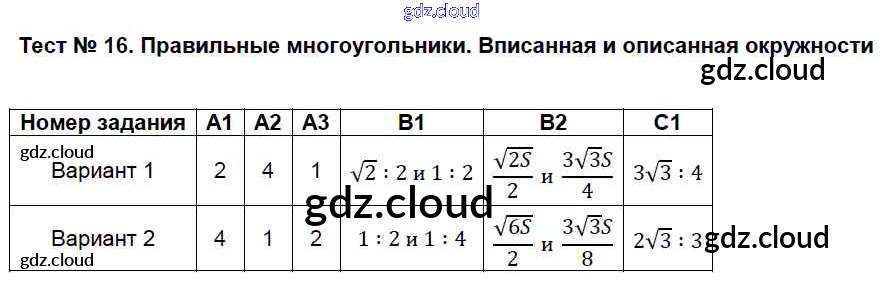 Ответы к Тестам по Геометрии 9 класс Контрольно-измерительные материалы (КИМ) Рурукин ВАКО