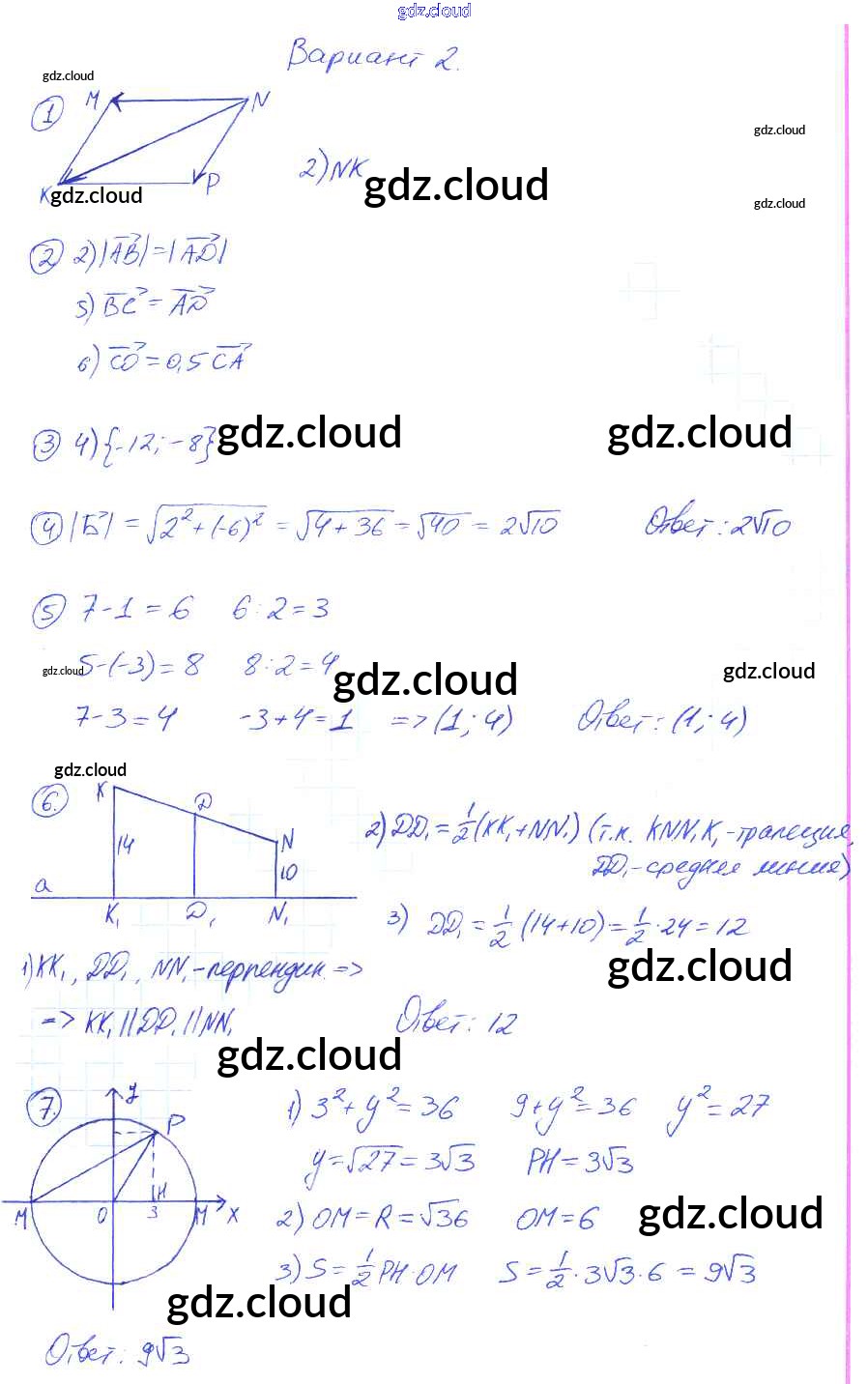 Ответы к КР-1. Варианты по Геометрии 9 класс Контрольные работы Мельникова УМК Экзамен