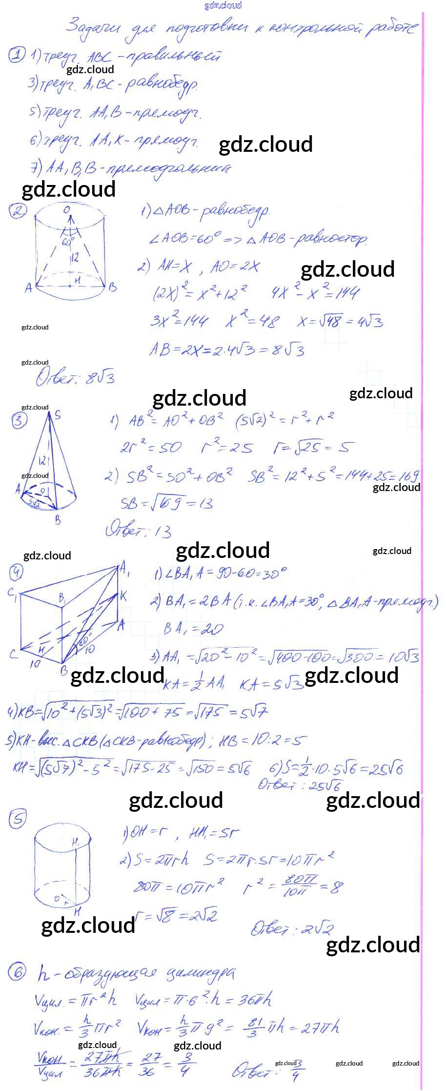 Ответы к КР-5. Варианты по Геометрии 9 класс Контрольные работы Мельникова УМК Экзамен