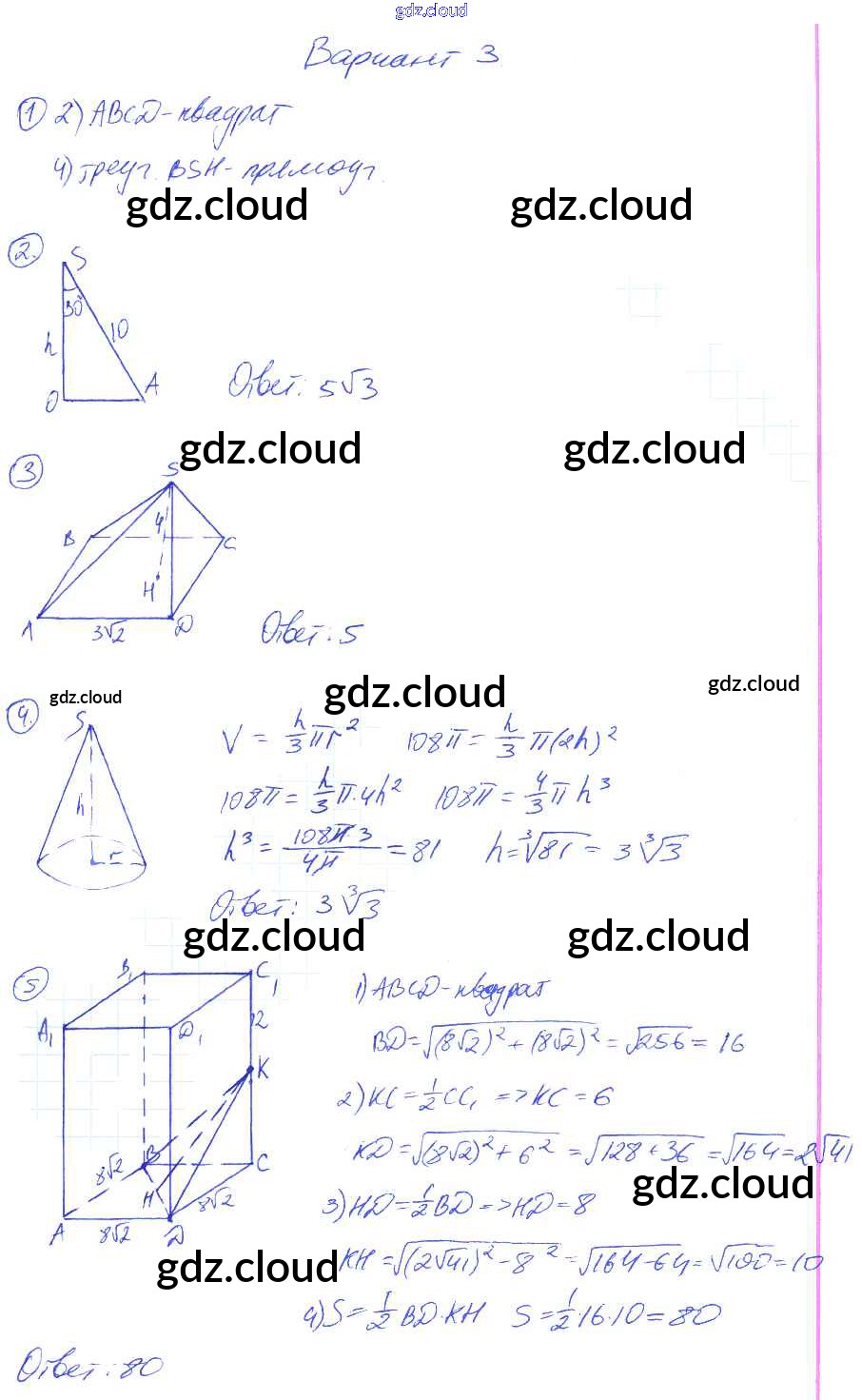 Ответы к КР-5. Варианты по Геометрии 9 класс Контрольные работы Мельникова УМК Экзамен