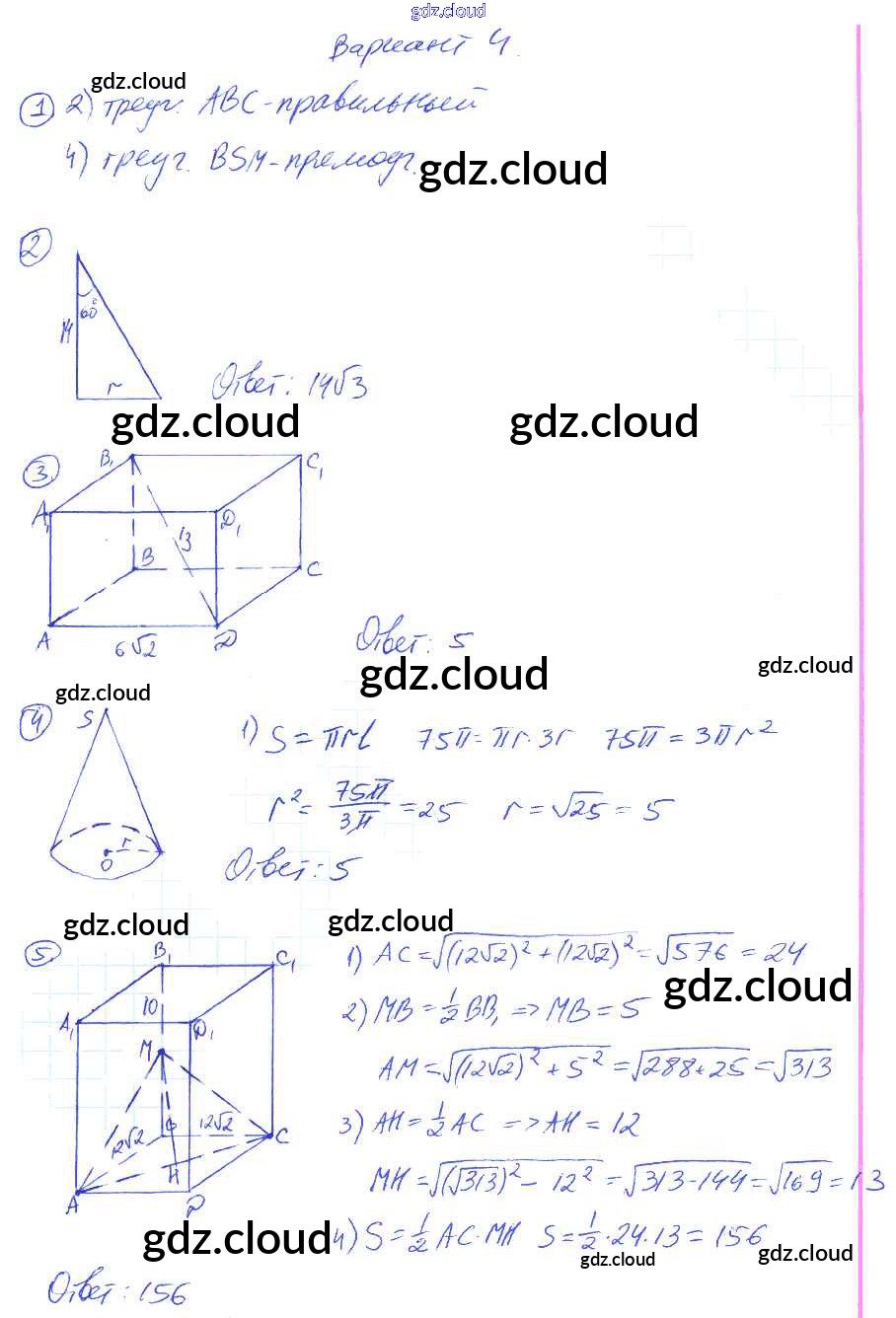 Ответы к КР-5. Варианты по Геометрии 9 класс Контрольные работы Мельникова УМК Экзамен