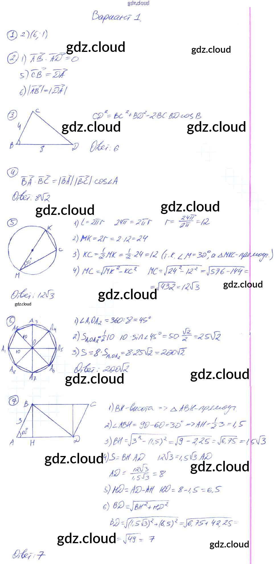Ответы к КР-6. Варианты по Геометрии 9 класс Контрольные работы Мельникова УМК Экзамен