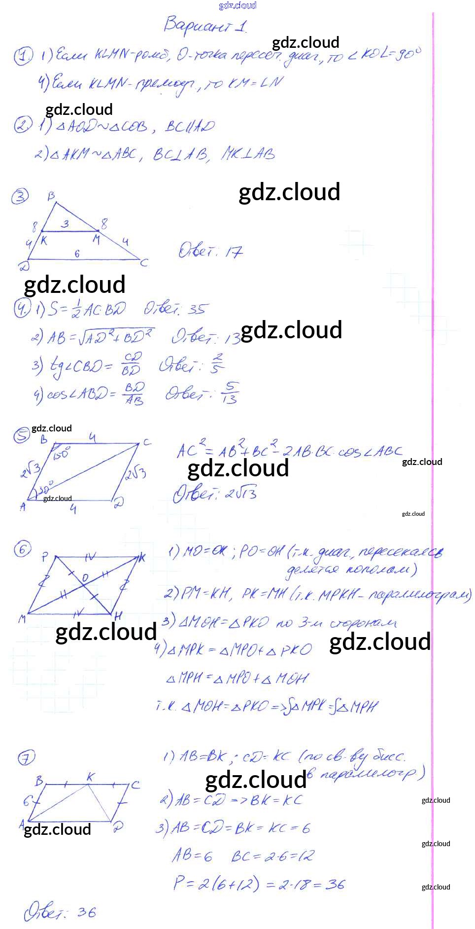 Ответы к КР-7. Варианты по Геометрии 9 класс Контрольные работы Мельникова УМК Экзамен