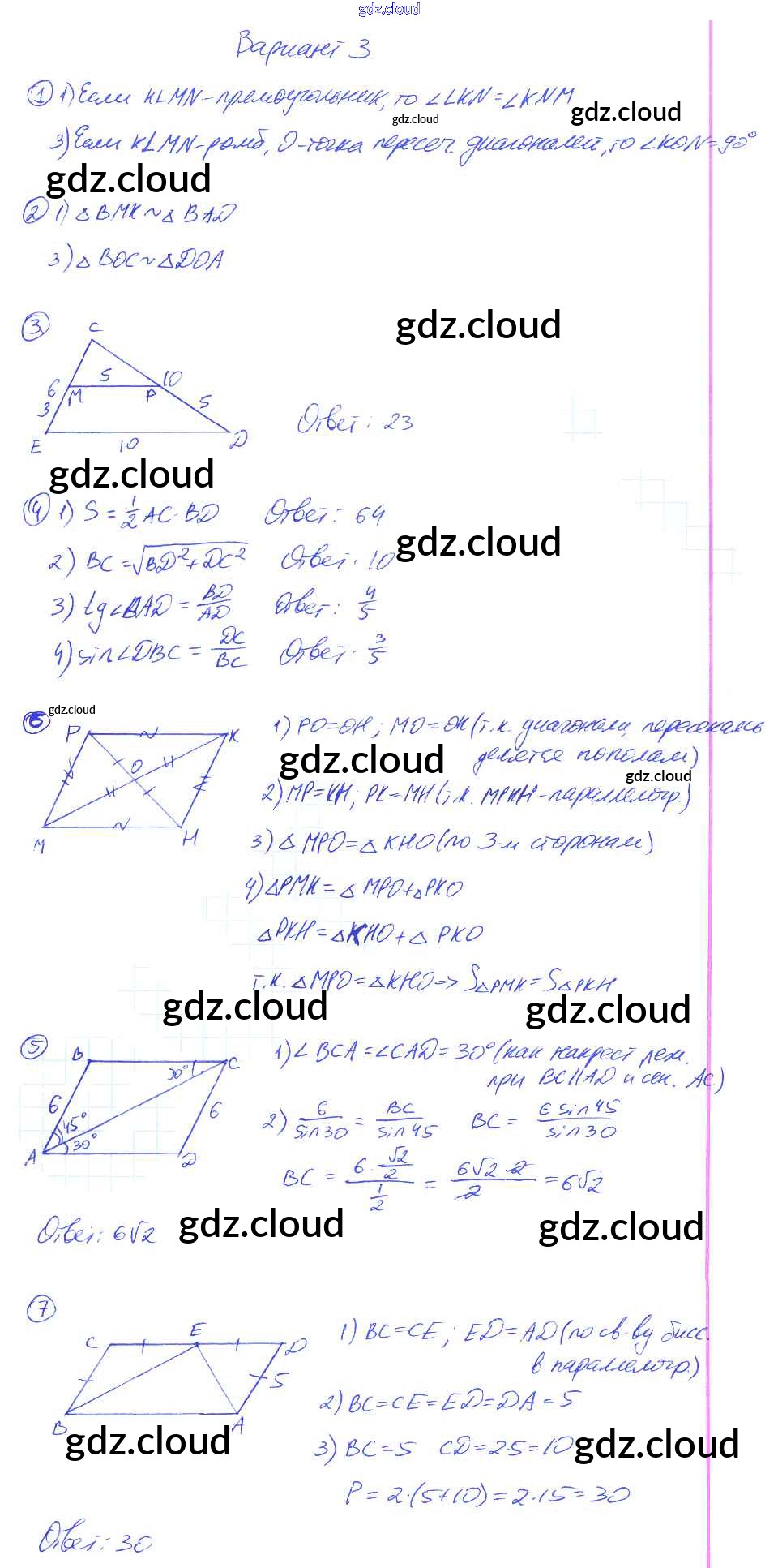 Ответы к КР-7. Варианты по Геометрии 9 класс Контрольные работы Мельникова УМК Экзамен