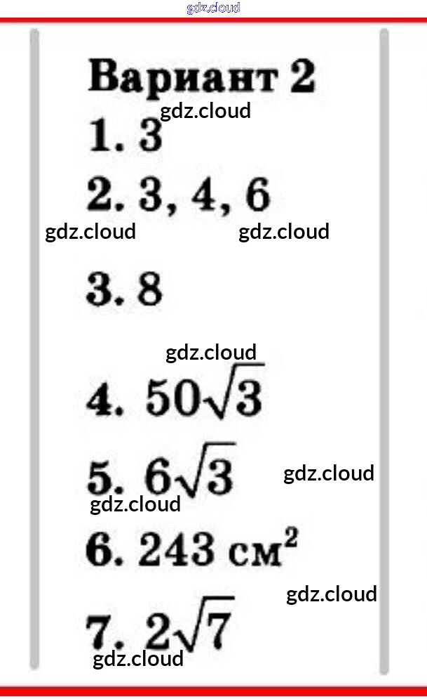 Ответы к КР №6 (Варианты) по Геометрии 9 класс Контрольные работы Мельникова УМК Экзамен