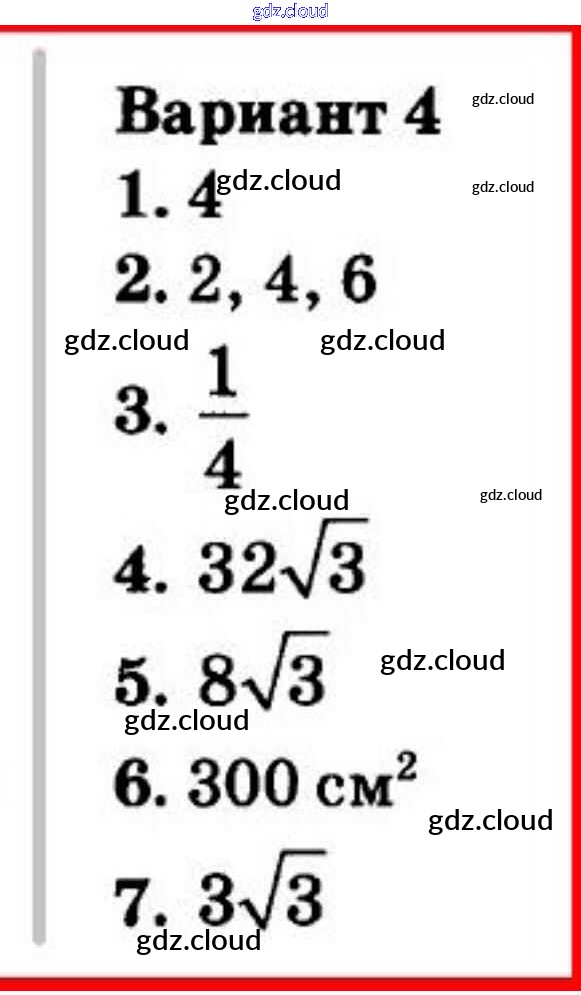 Ответы к КР №6 (Варианты) по Геометрии 9 класс Контрольные работы Мельникова УМК Экзамен