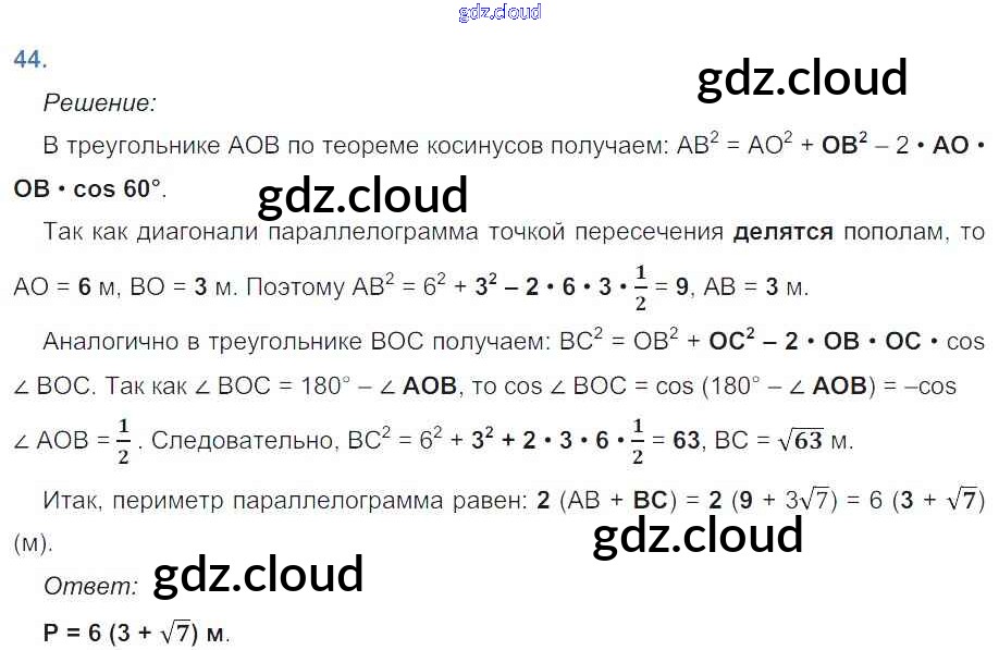 Ответ на задание 44 Рабочая тетрадь Геометрия за 9 (девятый) класс Атанасян, Бутузов, Глазков, Юдина 2014