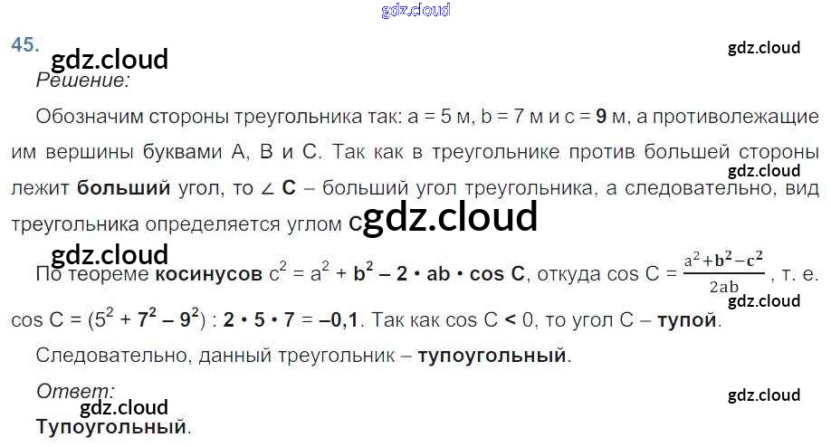 Ответ на задание 45 Рабочая тетрадь Геометрия за 9 (девятый) класс Атанасян, Бутузов, Глазков, Юдина 2014